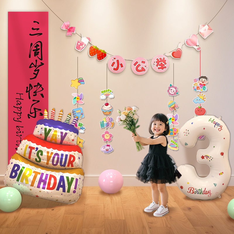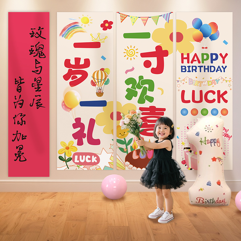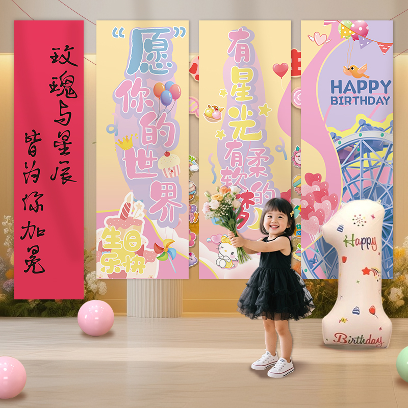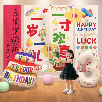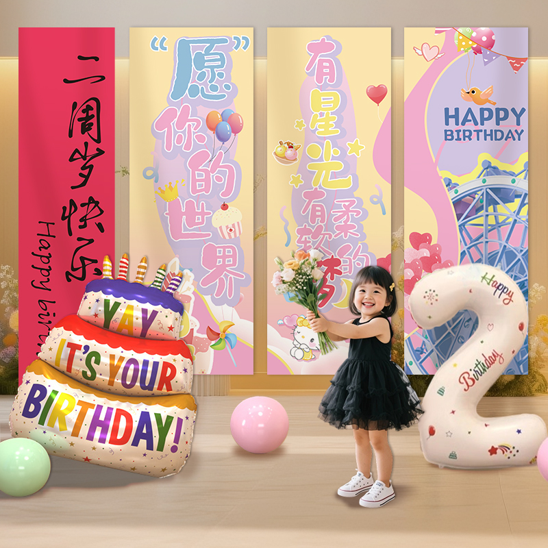 生日装饰品场景布置气球背景布宝宝周岁满月儿童派对女孩男孩主题