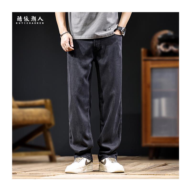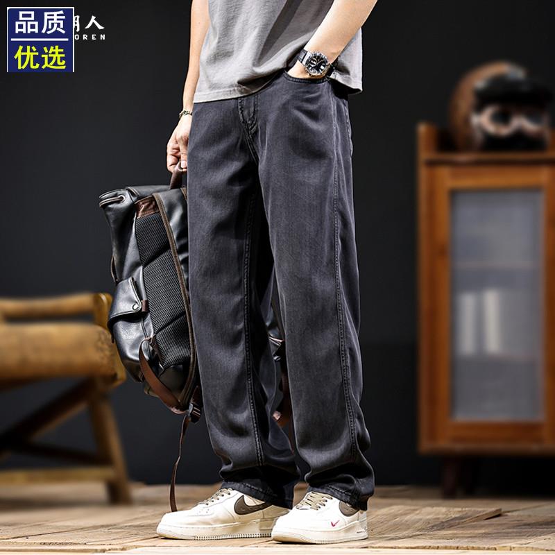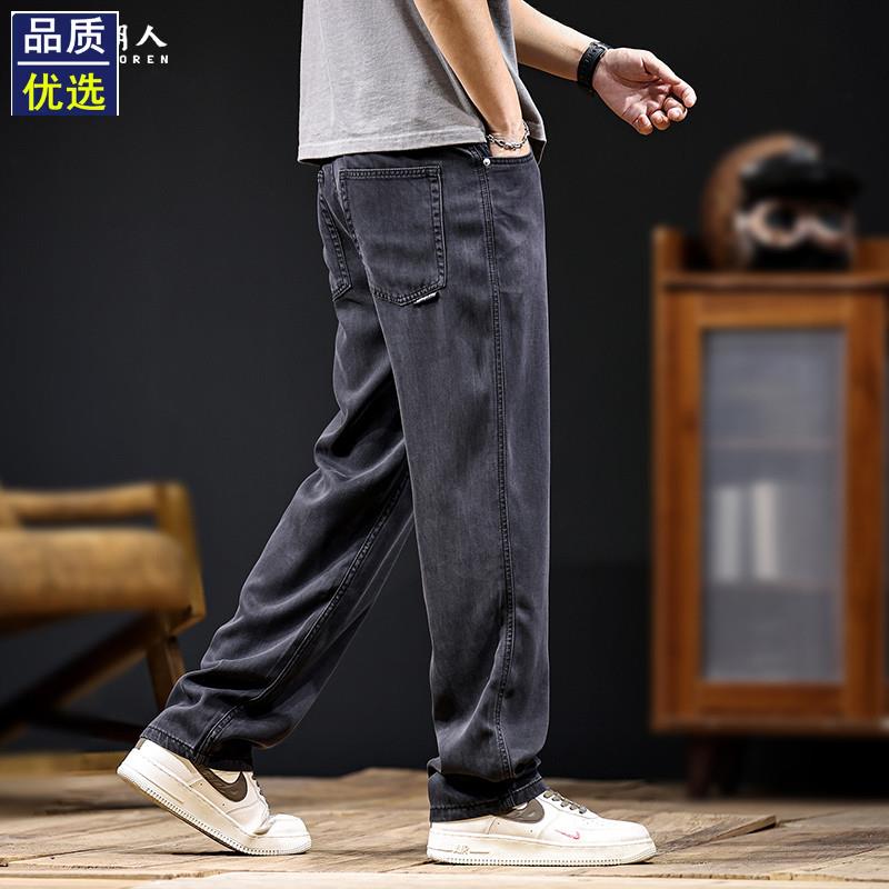 莱赛尔天丝2025新款牛仔裤男夏薄款潮牌大码黑色宽松直筒夏季轻薄