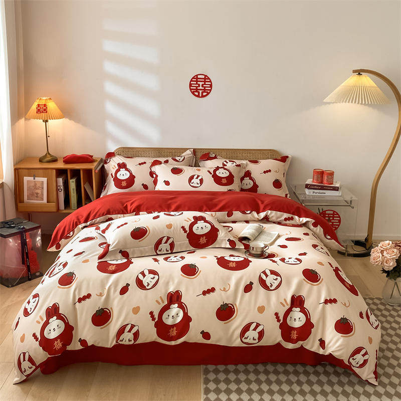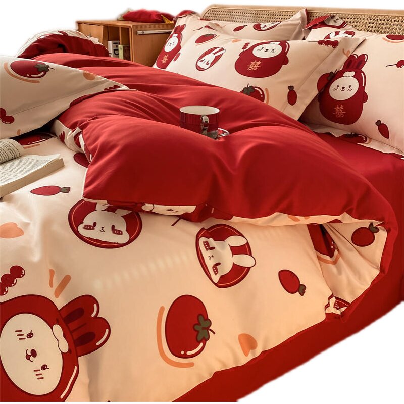 四件套婚礼磨毛水洗棉大红色床品