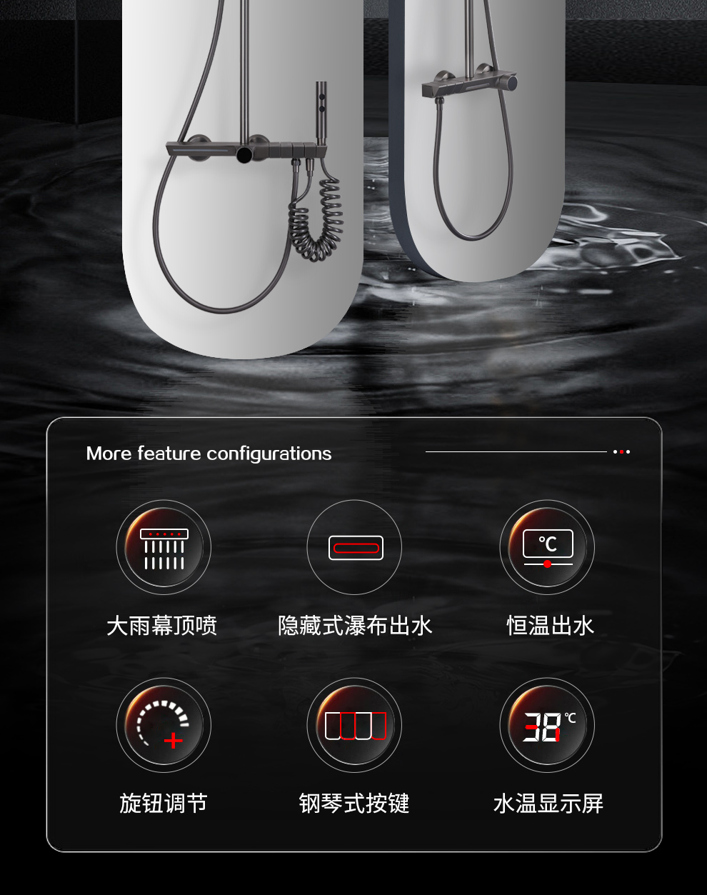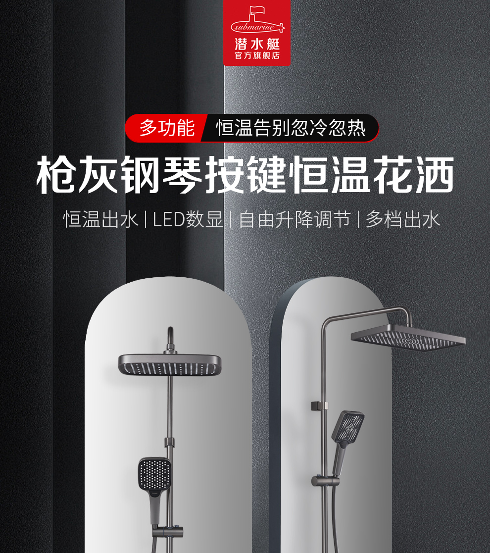 潜水艇钢琴按键花洒龙头喷枪浴室沐浴头卫生间淋雨家用淋浴器套装