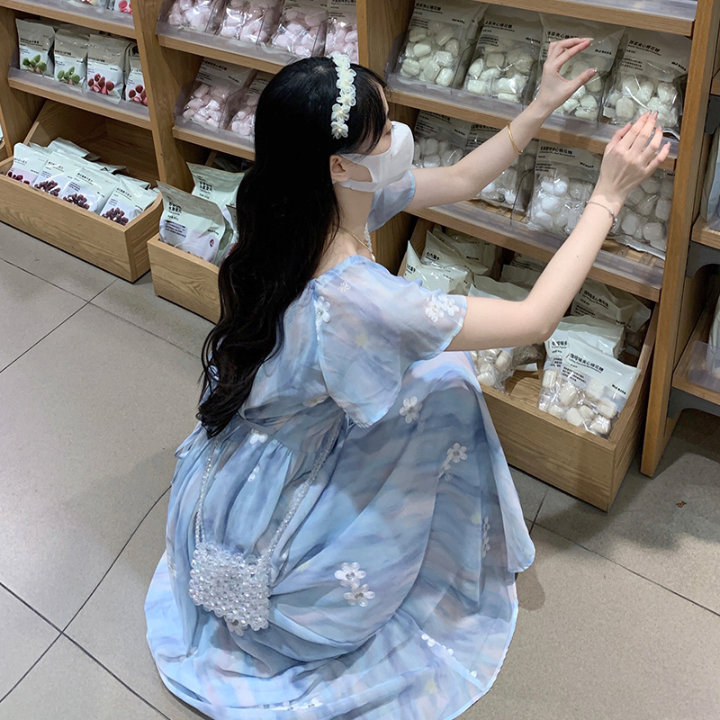 少女甜美度假风中长裙夏2024新款初中高中学生温柔初恋气质连衣裙