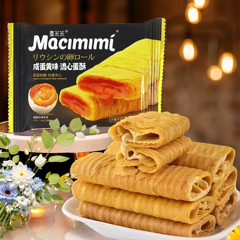麦米米流心蛋卷酥咸蛋黄味休闲零食小吃独立小包装糕点