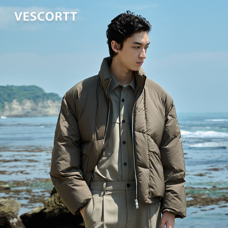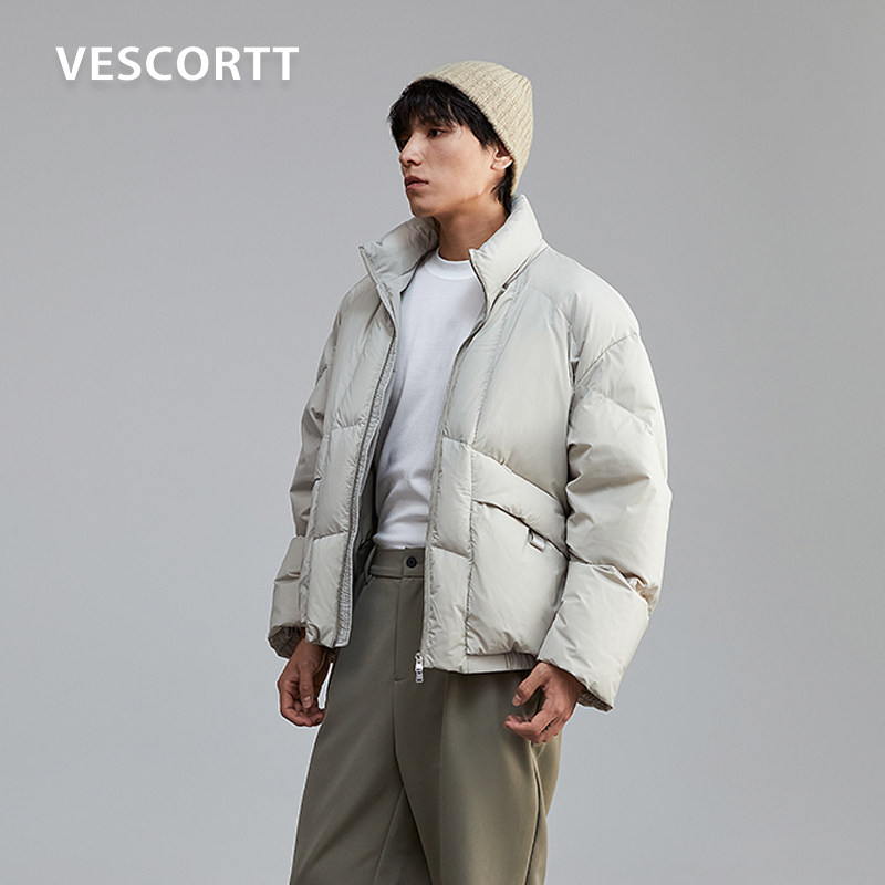 VESCORTT进口三醋酸舒柔特混纺 防风保暖 90白鹅绒短款羽绒服男
