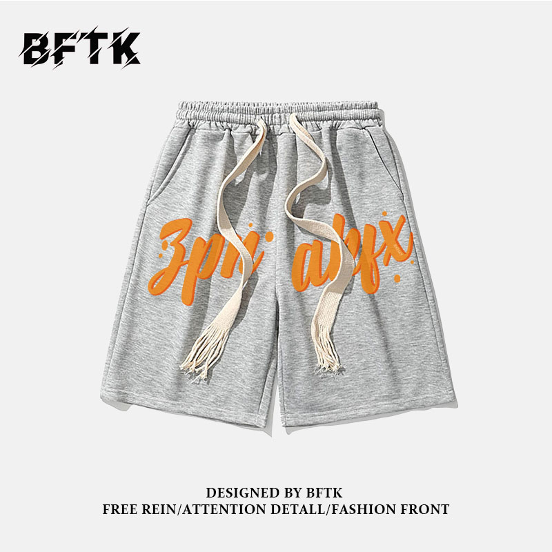 2025夏季百搭五分直筒抽绳短裤男生欧美宽松复古hiphop运动卫裤潮