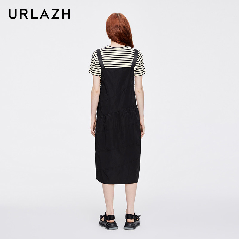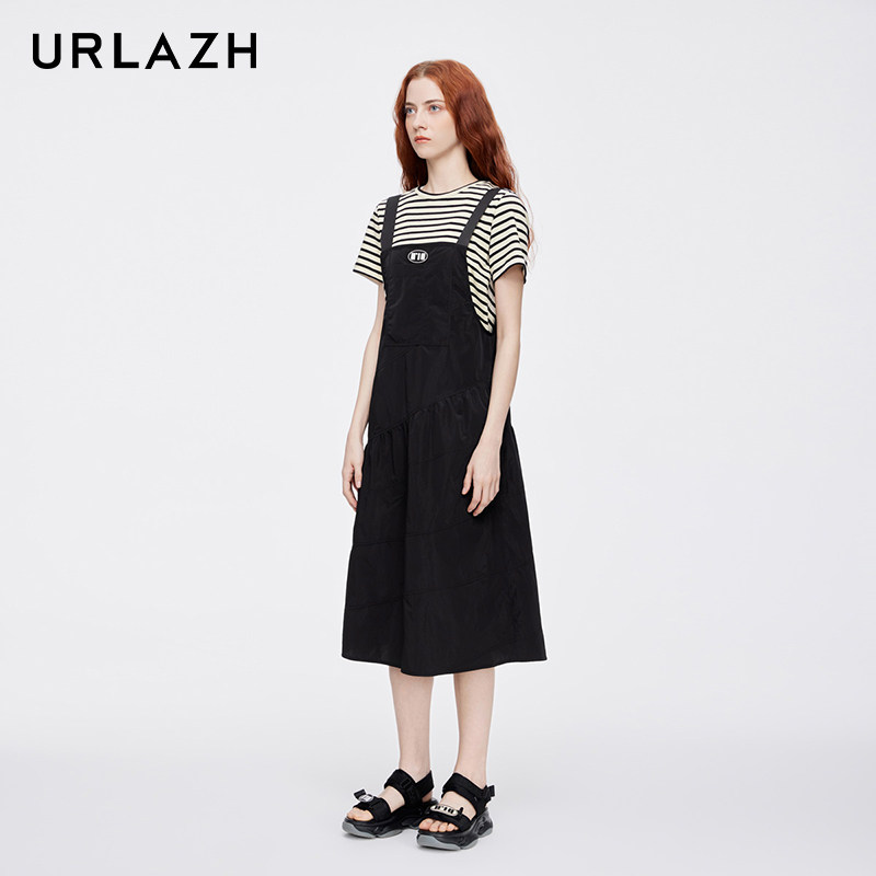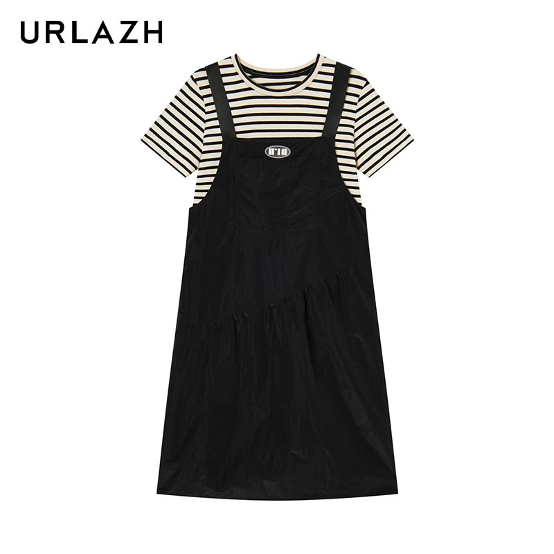 URLAZH有兰新款复古洋气两件套条纹休闲简约减龄短袖背带连衣裙女