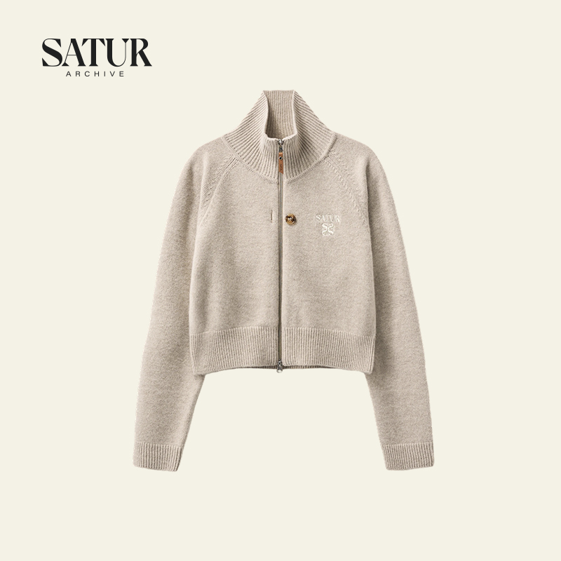 SATUR ARCHIVE2025秋冬新款宽松百搭混纺羊绒半高领拉链针织衫