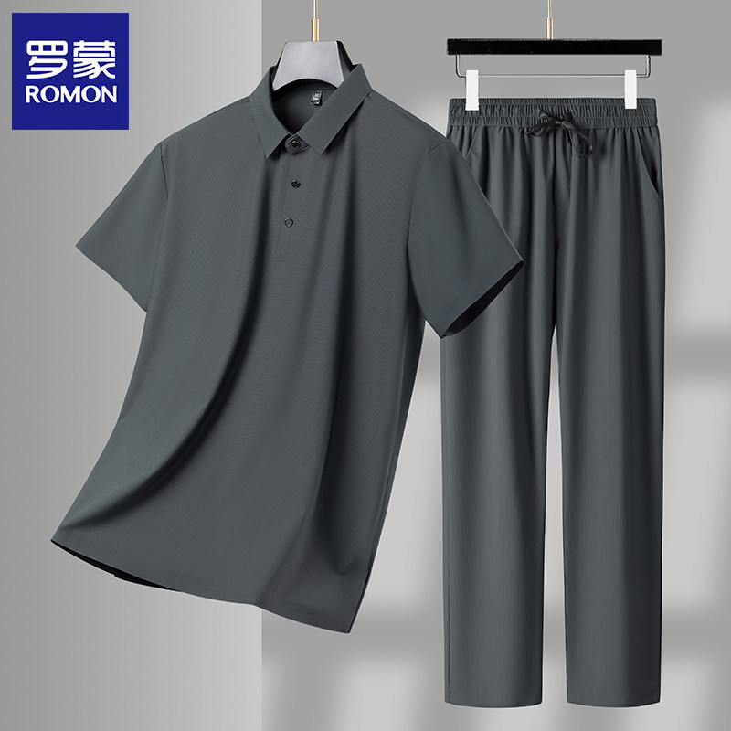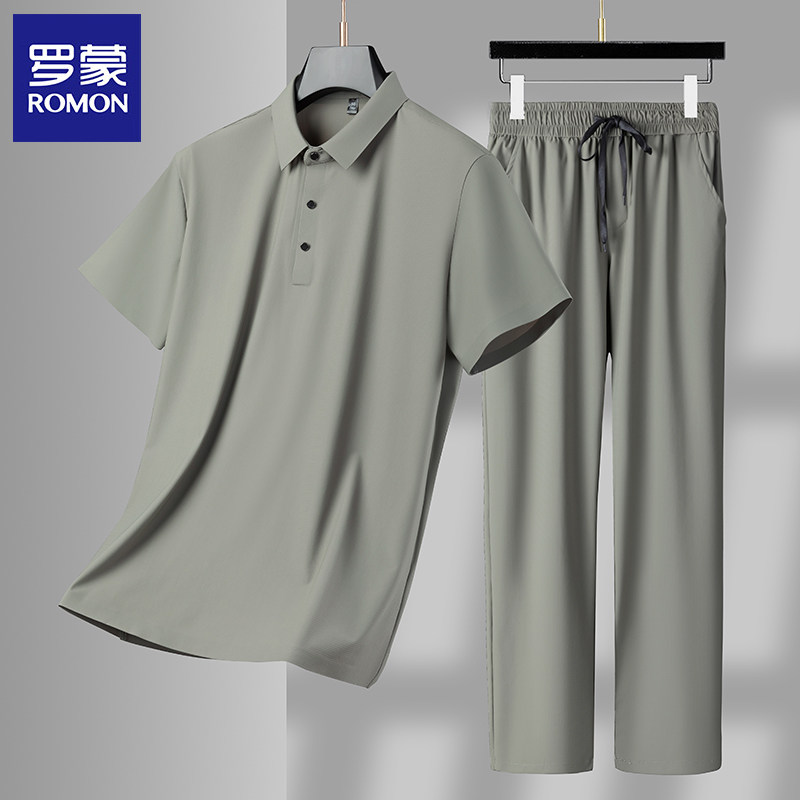 罗蒙爸爸套装冰丝短袖休闲两件套