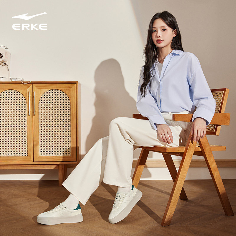 骄阳鸿星尔克德训鞋女板鞋厚底T头鞋冬季新款休闲运动鞋子小白鞋