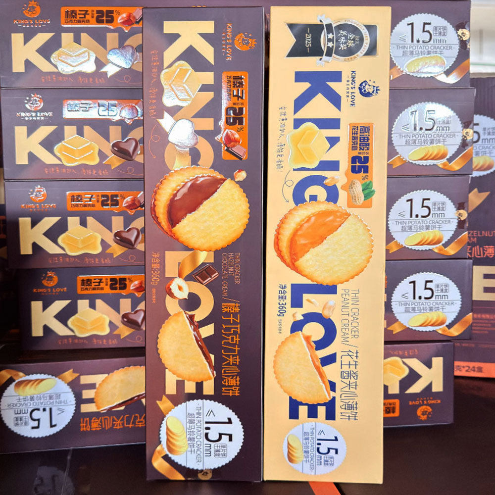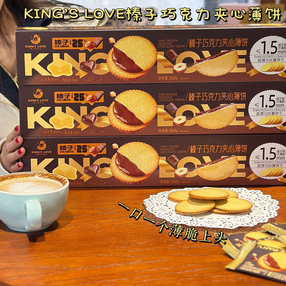 国王的赞赏花生酱夹心薄饼榛子巧克力味饼干360克卡贺家奶酪零食