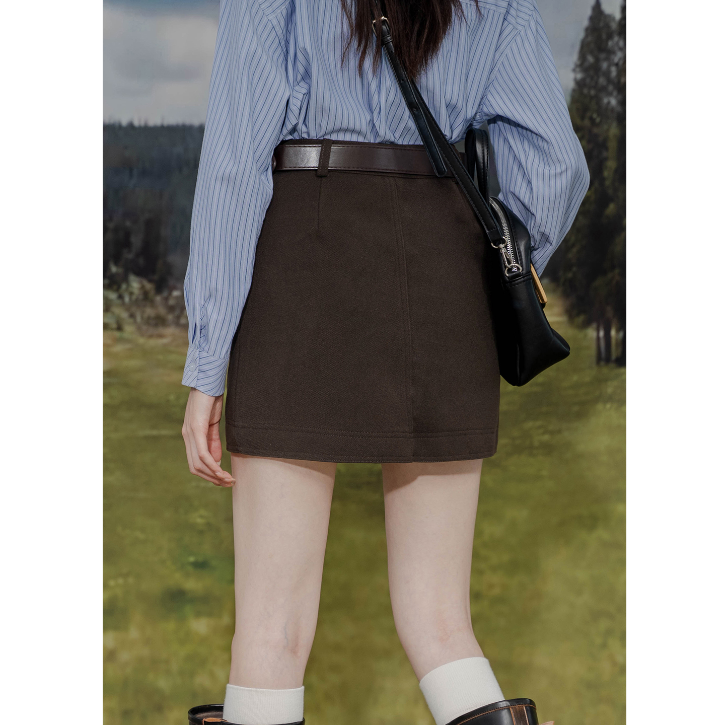 复古高腰毛呢半身裙女简约百搭防走光内衬修身气质包臀A字短裙秋