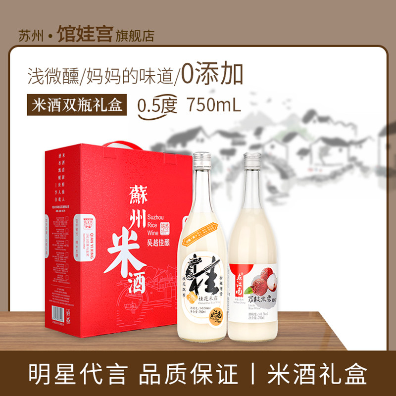 馆娃宫苏州桥米酒双味喜庆礼盒桂花荔枝原味抹茶蜜桃低度甜酿米露