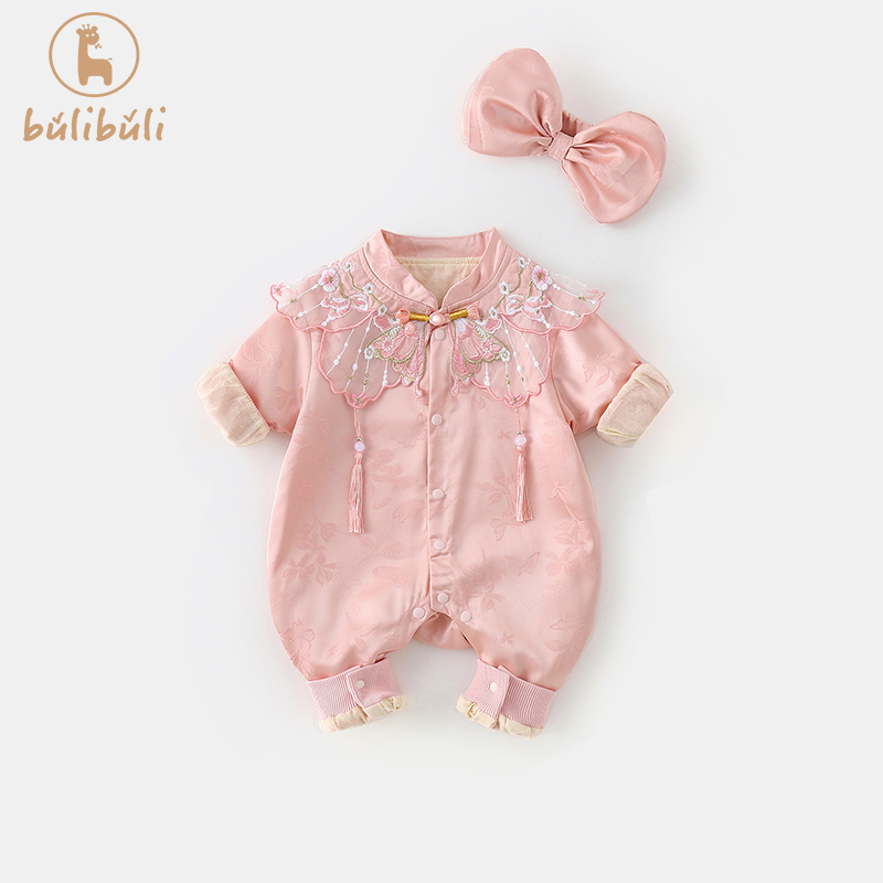国风婴儿春装衣服女宝宝连体衣公主洋气满月百天哈衣春季外出爬服
