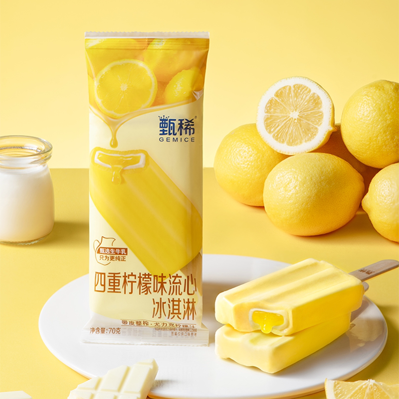 【新品】伊利甄稀四重柠檬流心冰淇淋茉莉荔枝味流心冰激凌冷饮