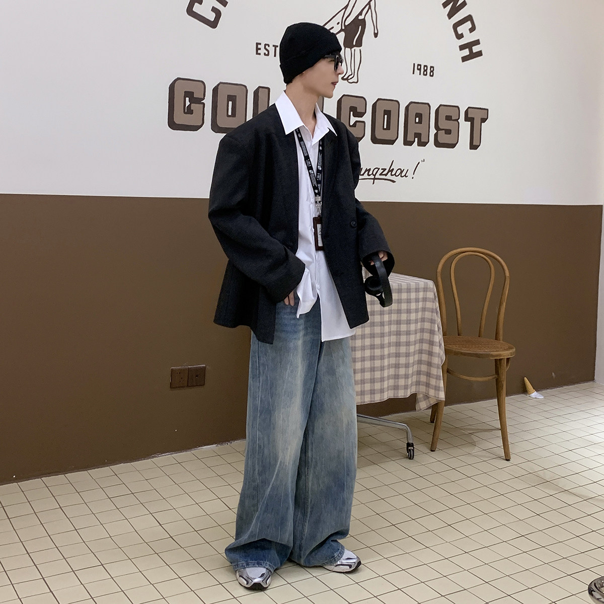 白口阳【海岛度假日】百搭宽松牛仔裤男休闲水洗长裤ins2025年春