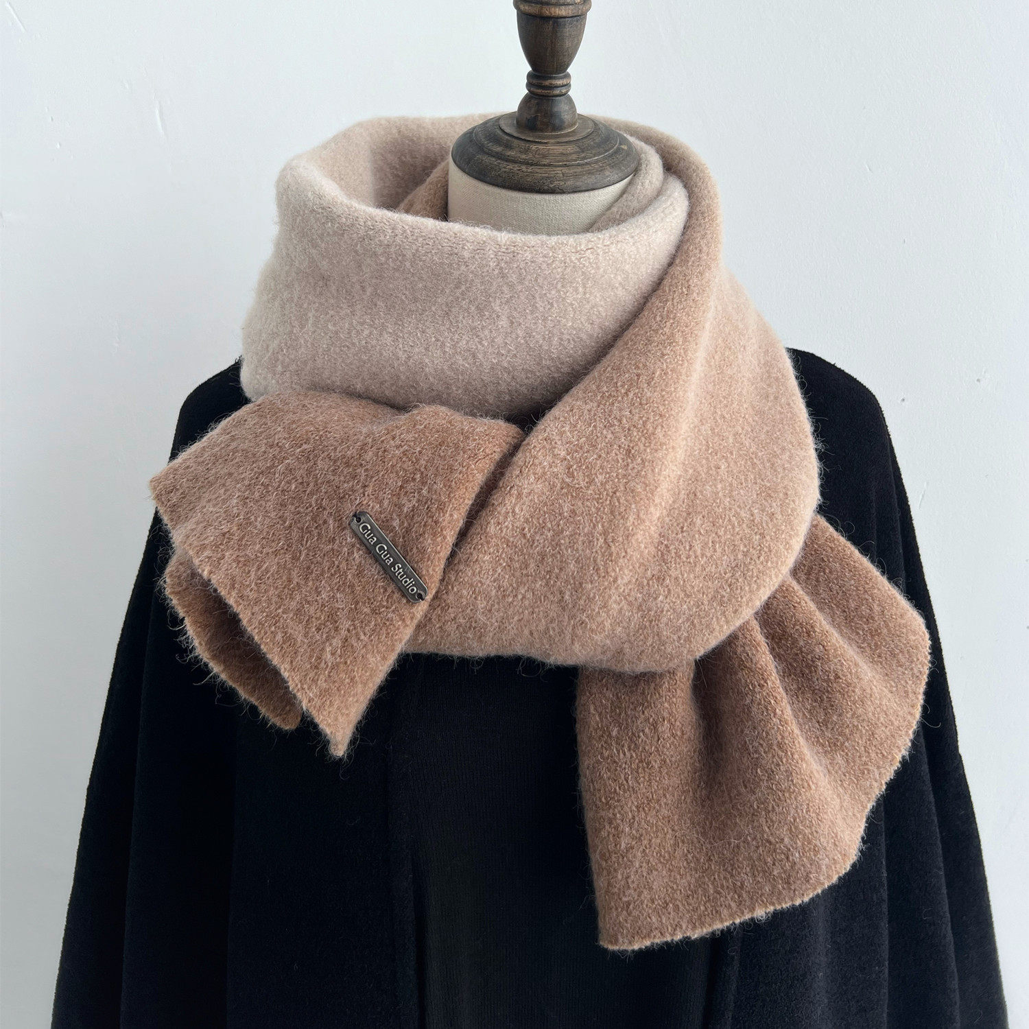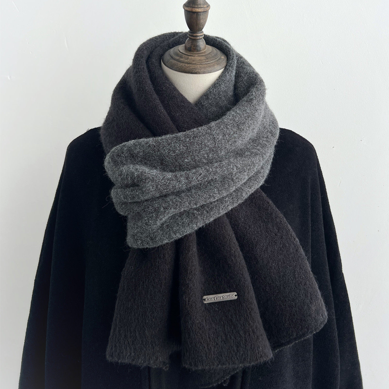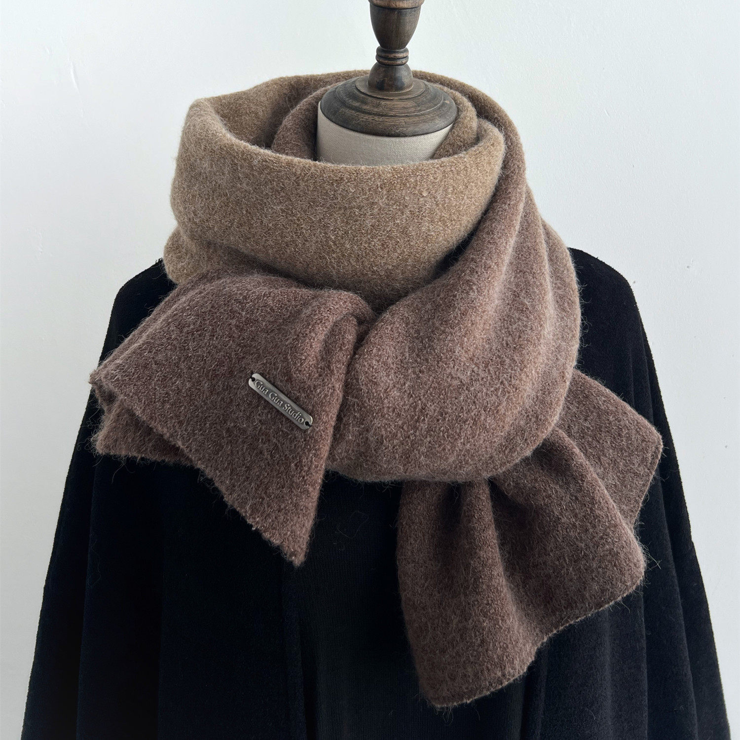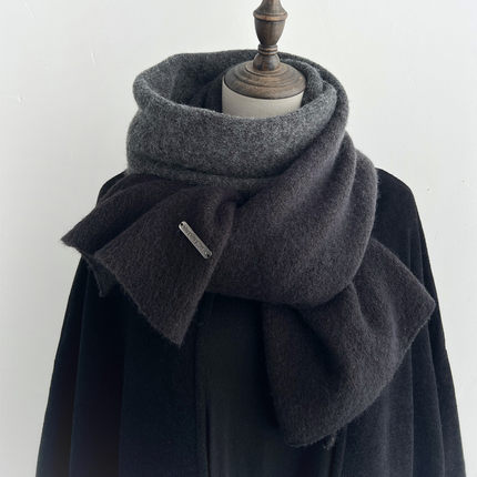 高级感深灰色渐变色围巾女冬季软糯保暖韩版棕色系针织毛线围脖男