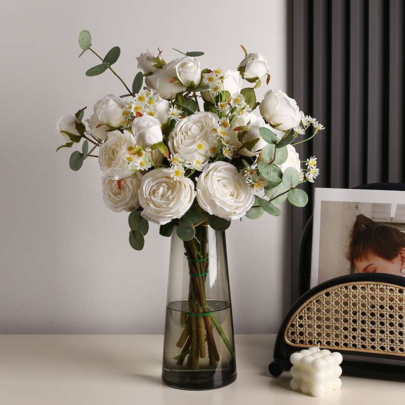 贝汉美高档玫瑰花绢花假花仿真花束摆设客厅室内装饰花卉套装摆件