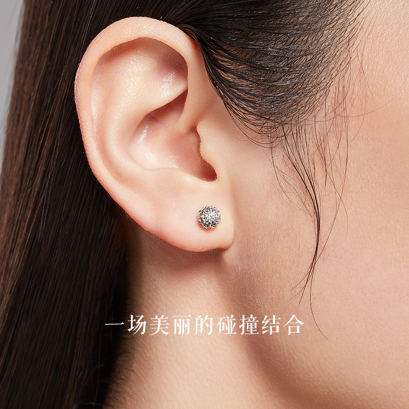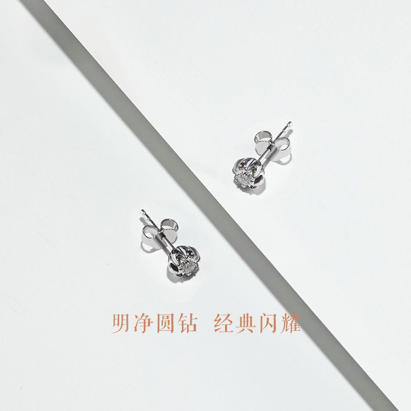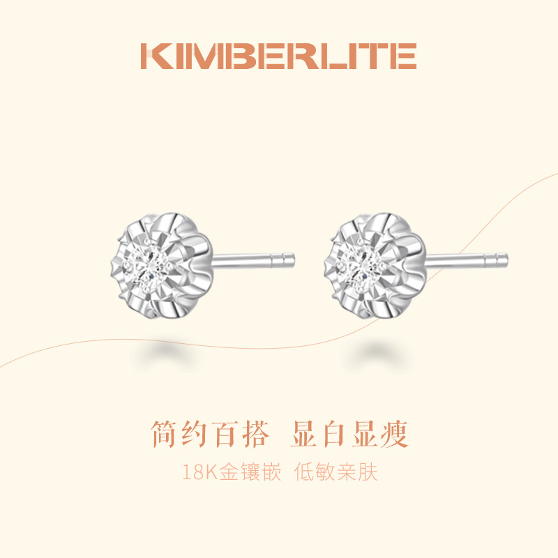金伯利钻石花漾耳钉18K白金真钻单钻耳饰女全国联保顺丰发货
