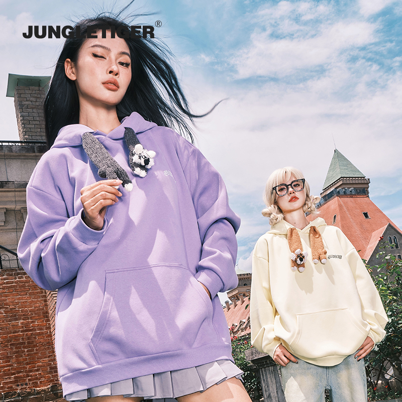 JUNGLETIGER可拆卸老虎玩偶手工针织帽绳卫衣情侣款重磅上衣男女