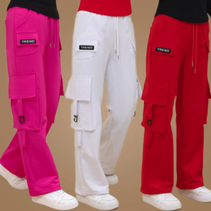 时尚工装裤女宽松多口袋广场舞曳步舞运动裤子休闲健身跳舞裤子潮