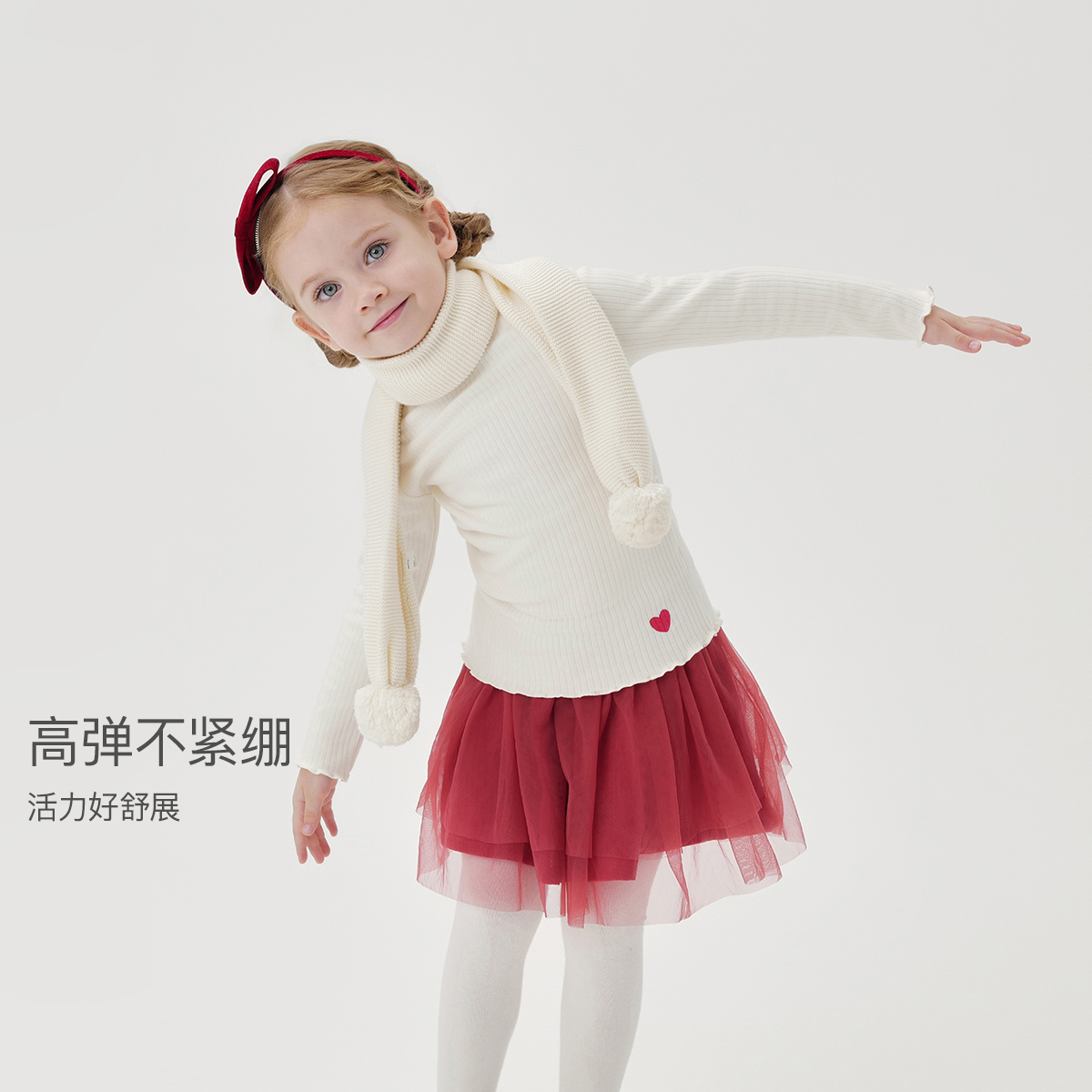 [科技发热]马克珍妮女童半高领打底衫 宝宝印花T恤秋冬款241550