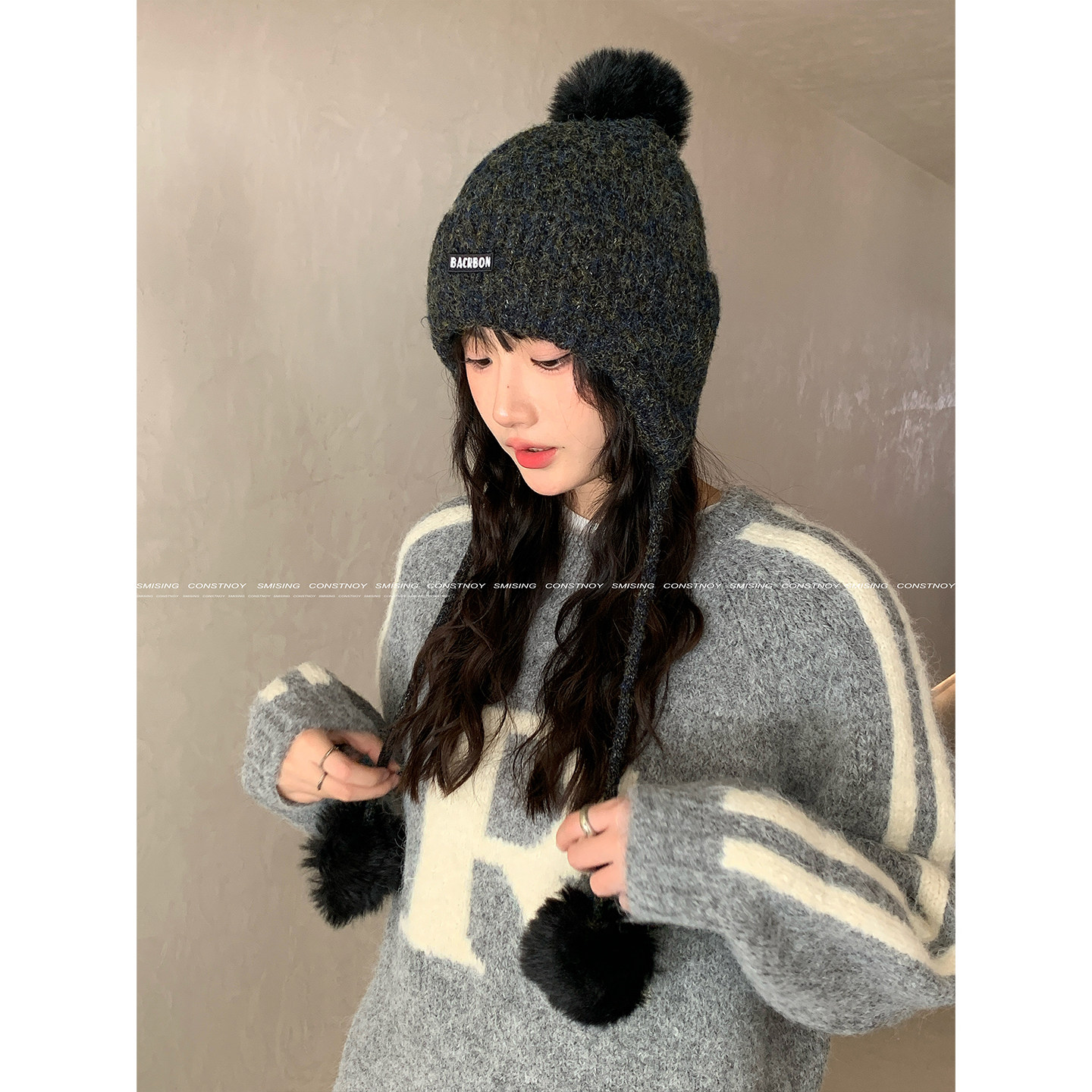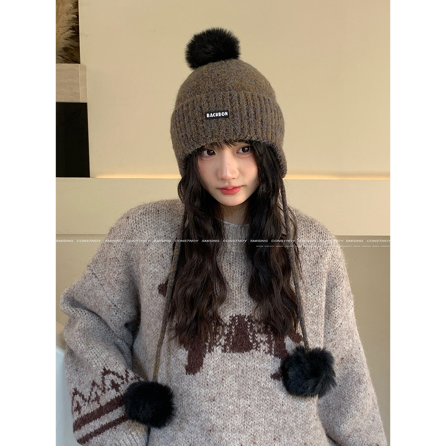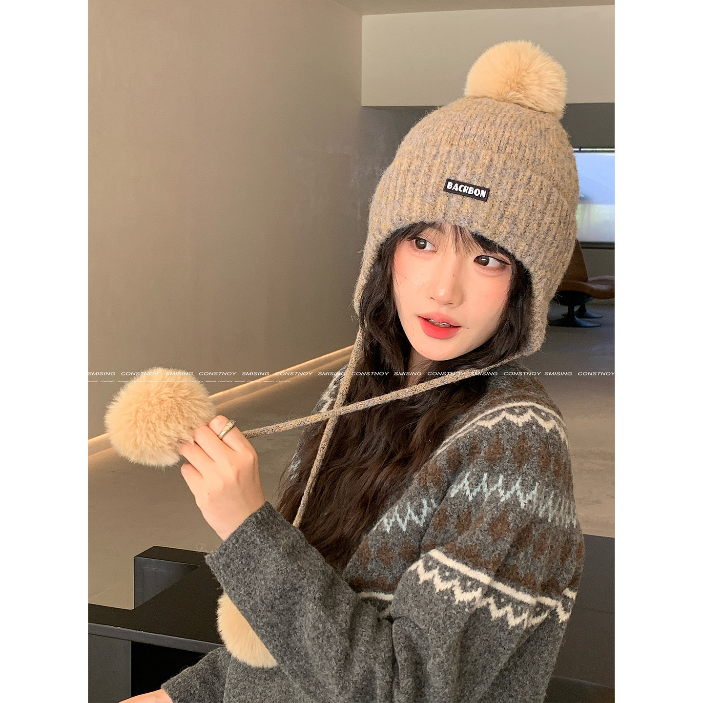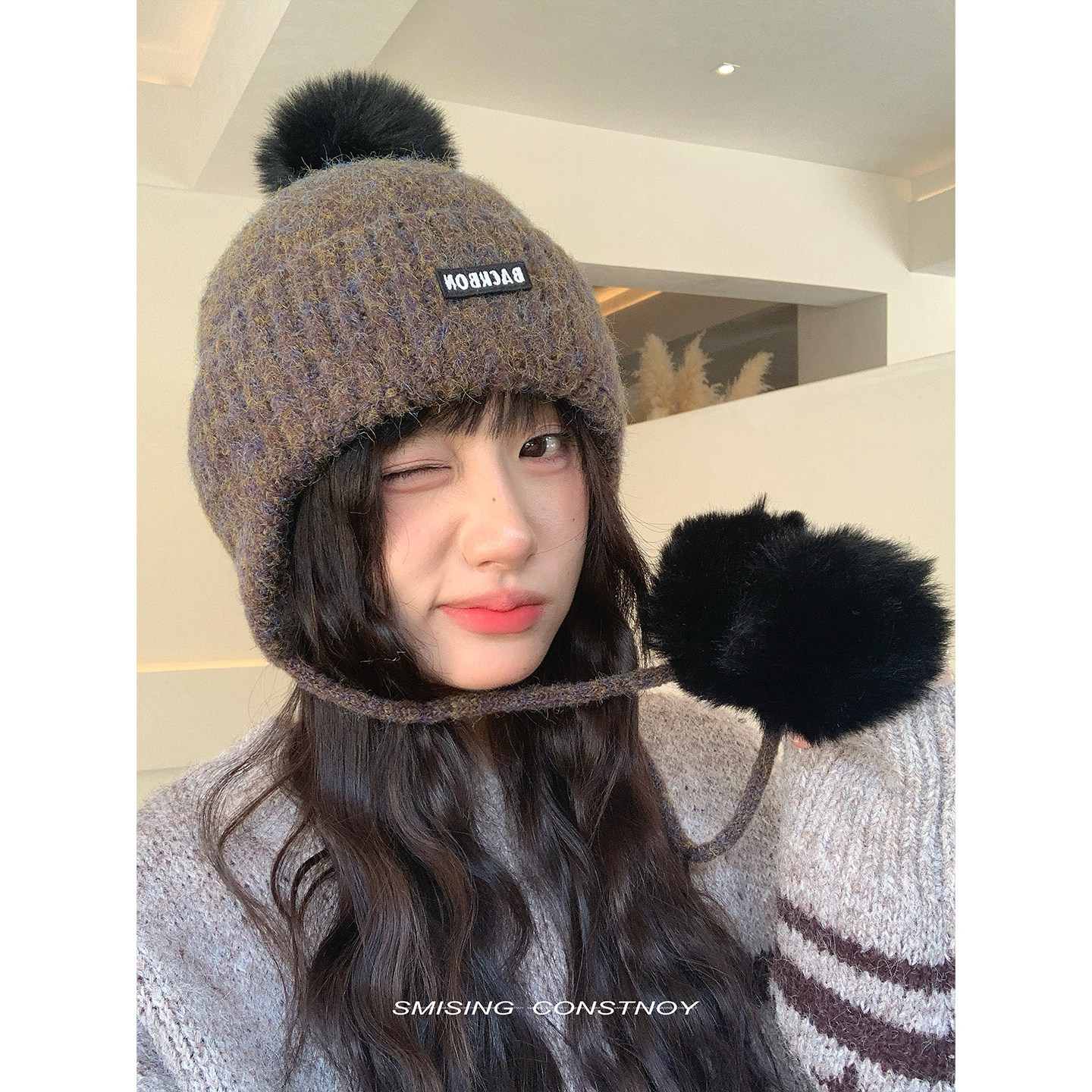 甜美可爱韩版针织毛线帽女冬季保暖护耳毛球帽子显脸小防寒包头帽