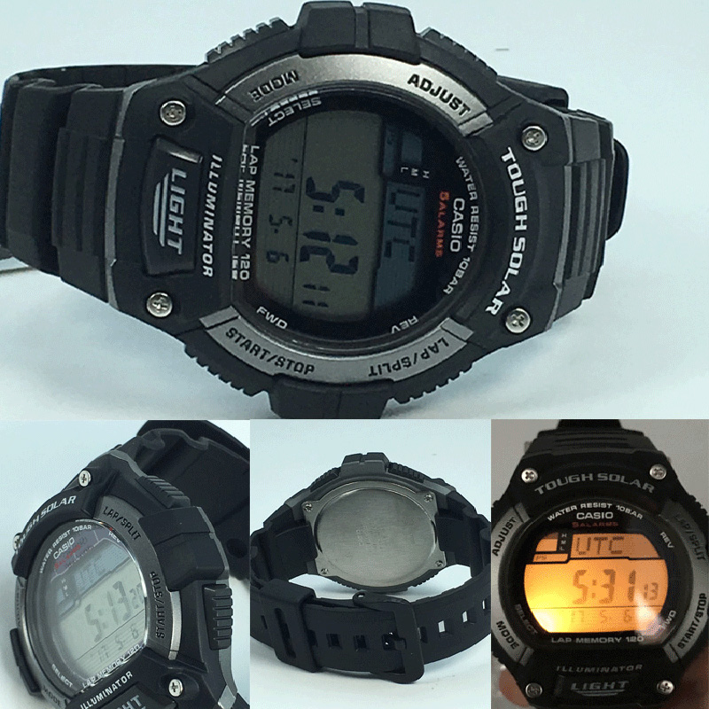 卡西欧手表男CASIO W-S220-1A 银黑学生运动多功能太阳能电子表
