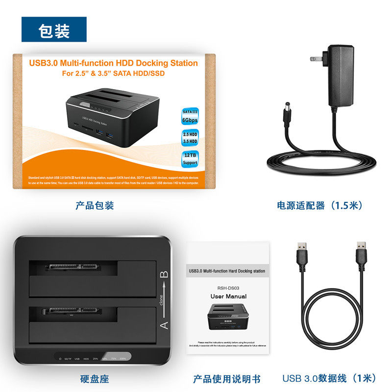 荣胜辉USB3.0双硬盘底座 硬盘座 2.5/3.5英寸串口SATA移动硬盘盒