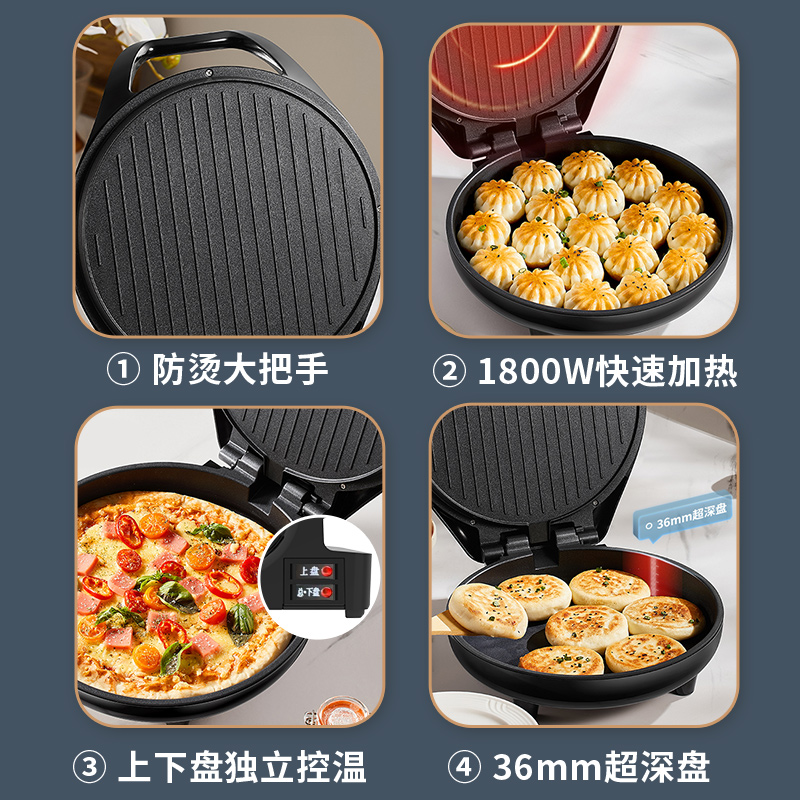 利仁电饼铛家用双面加热煎烙饼锅煎饼机加深加大烙饼机新款电饼档