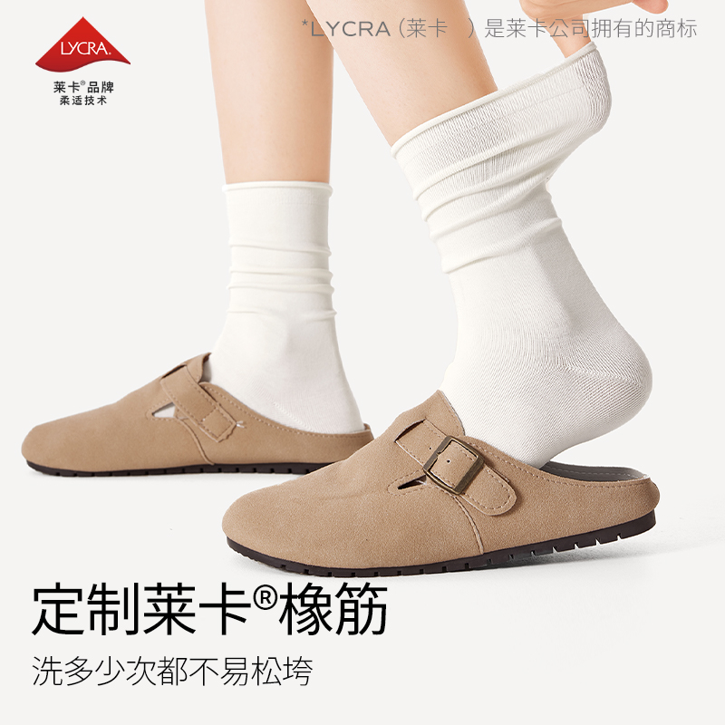 棉竹屋堆堆袜子女款春秋款纯棉2025新款爆款配小皮鞋中筒无骨袜
