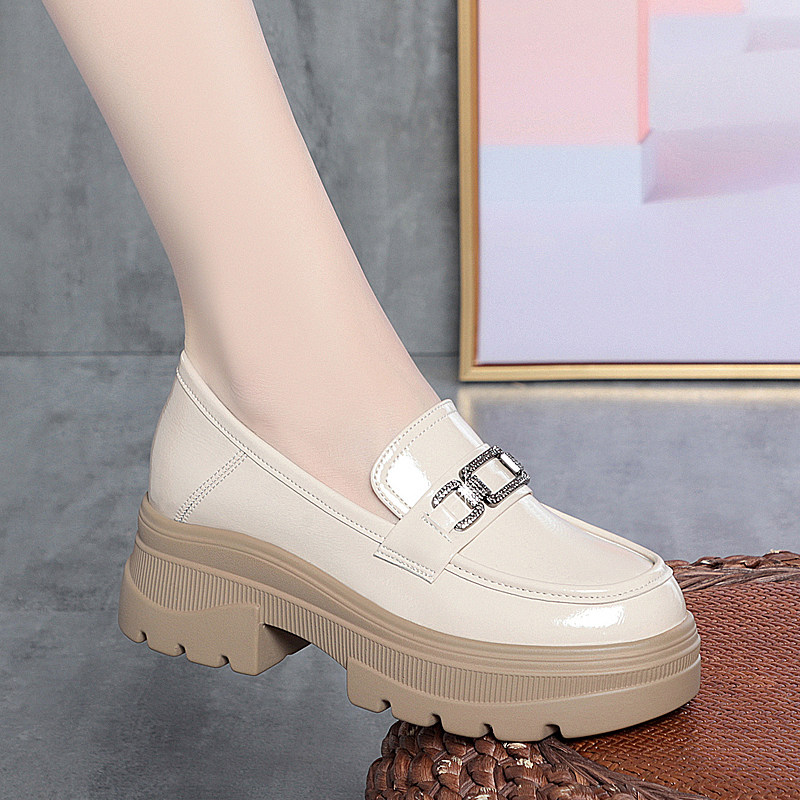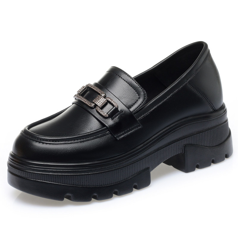2025春秋新款圆头英伦风厚底乐福鞋女软皮粗跟百搭单鞋松糕小皮鞋