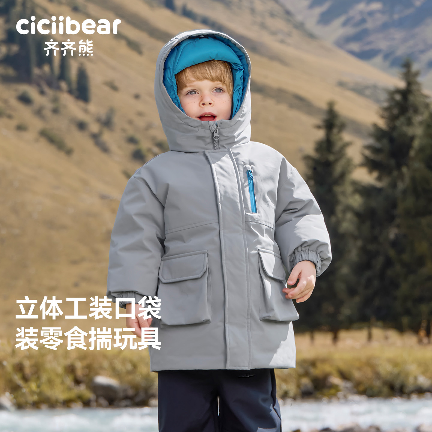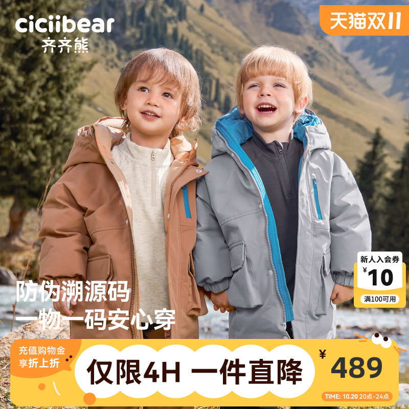 [极寒工装三防]齐齐熊宝宝羽绒服男童冬装加厚外套儿童户外保暖衣