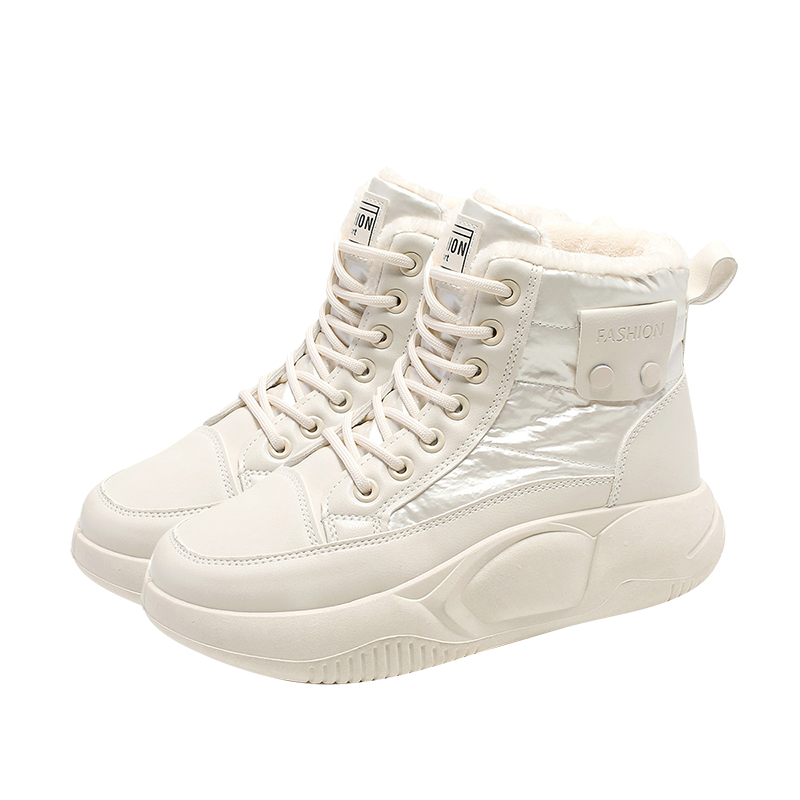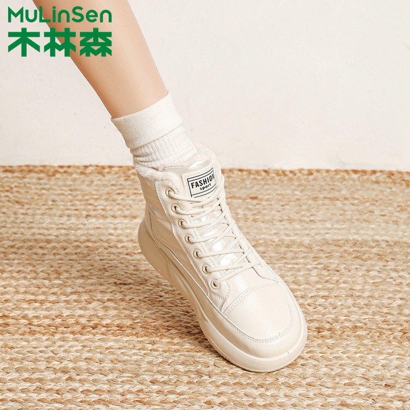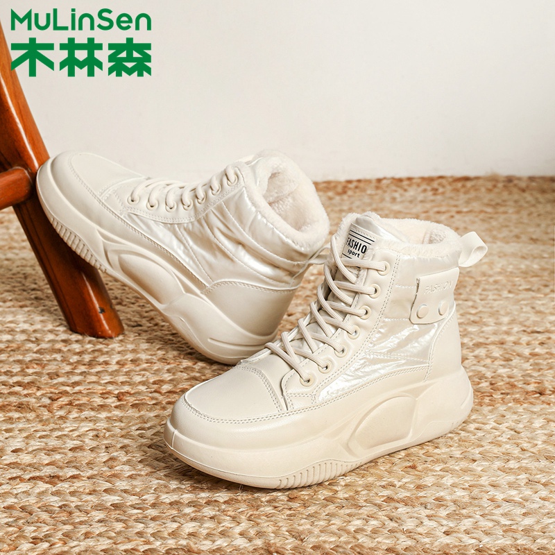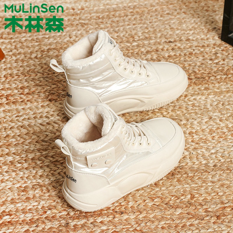 木林森高帮短靴女2024新款冬季百搭厚底休闲运动鞋加绒保暖雪地靴