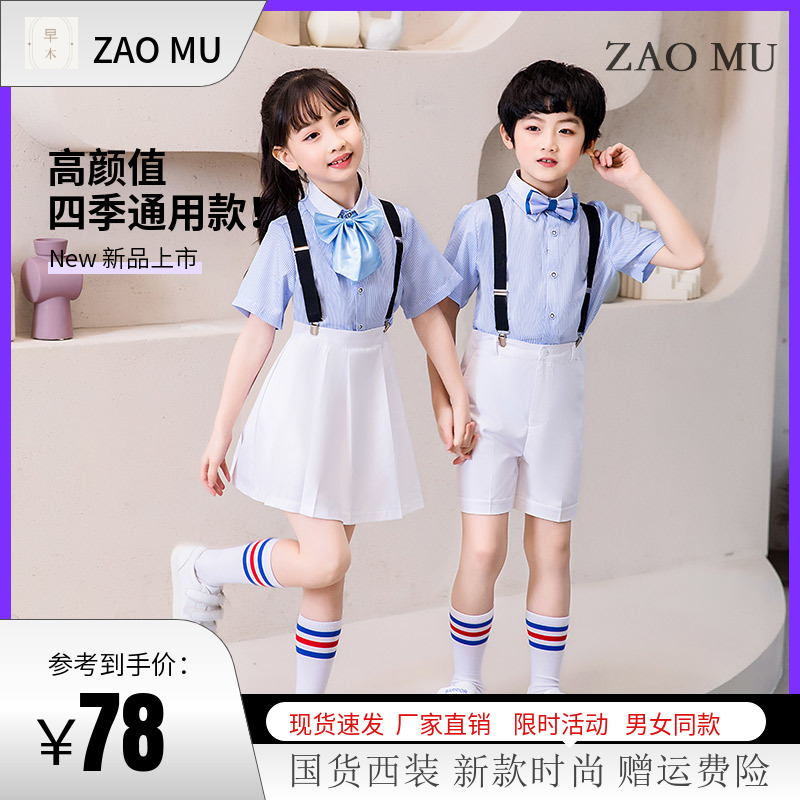 六一儿童演出服男童女童抱婴袋裤英伦风校服合唱团诗朗诵小学生夏