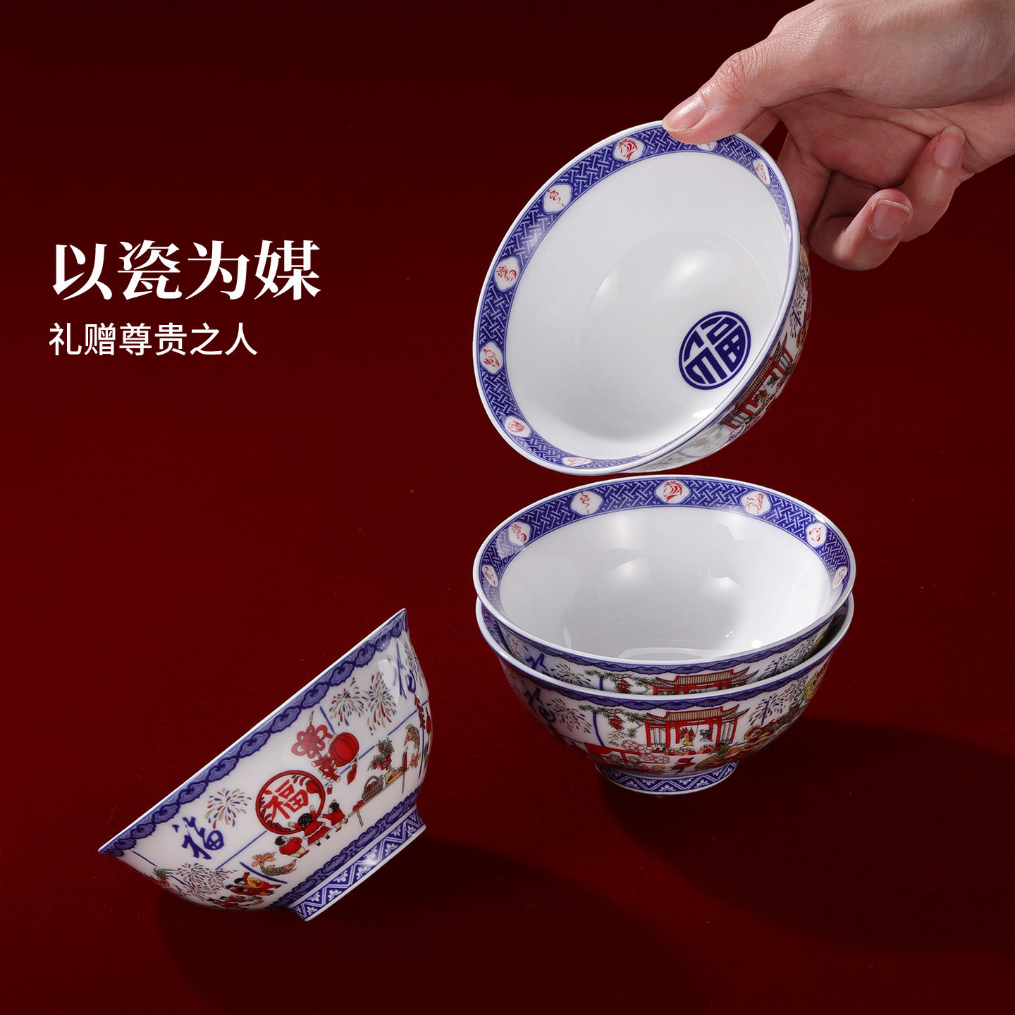 景德镇官方春节申遗纪念陶瓷饭碗餐具瓷器套装高档礼盒礼物纪念品
