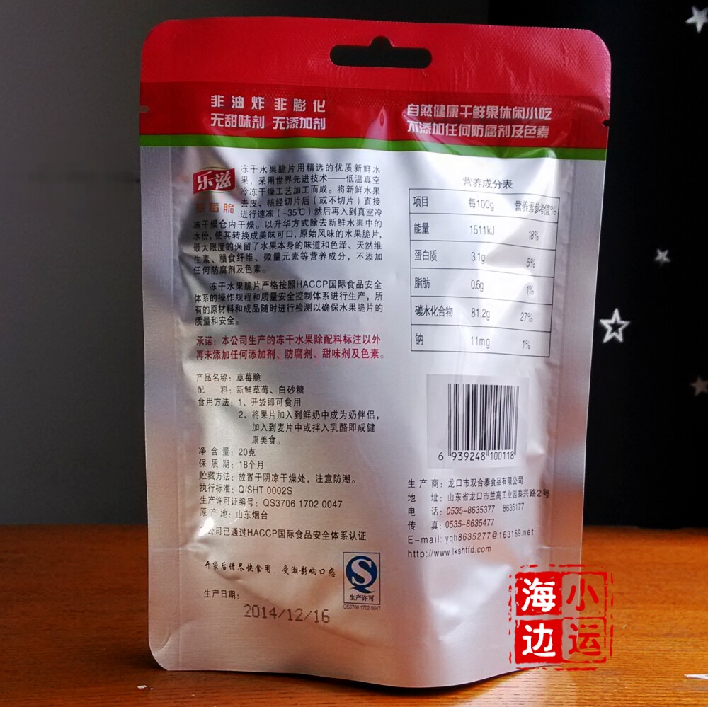 山东烟台产地发货乐滋冻干草莓脆草莓干 桃/苹果/香蕉20g*10包