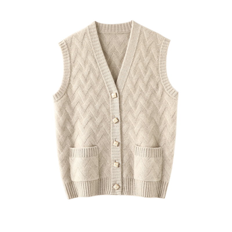 华丽素雅并行!加厚V领纯山羊绒背心女羊绒毛衣开衫针织坎肩秋冬