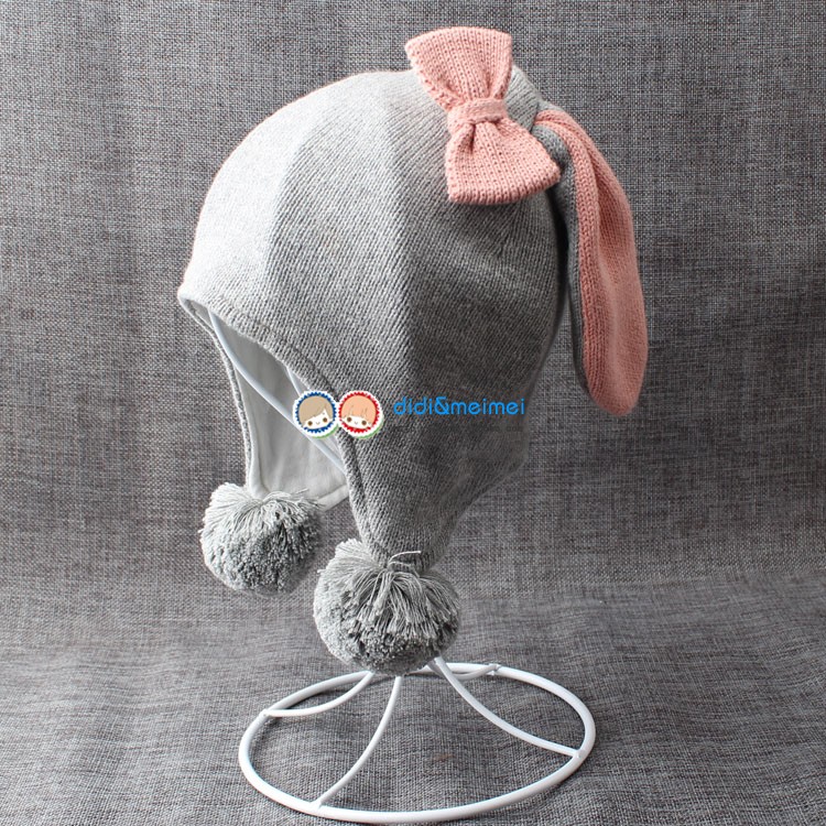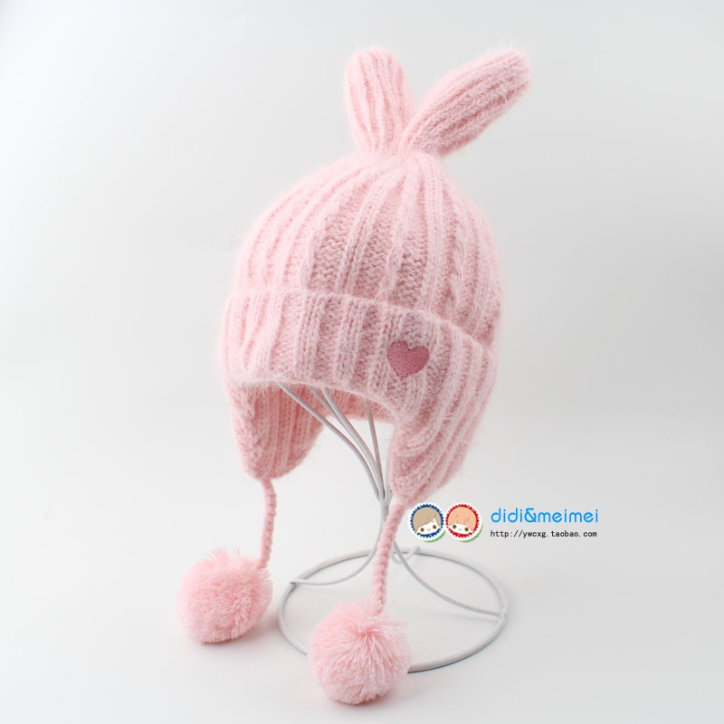 韩版秋冬双层加厚保暖女宝宝帽子 可爱立耳兔子绒绒公主儿童帽子