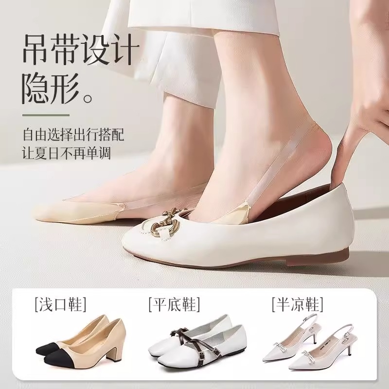 高跟鞋袜子夏季女半脚尖袜前脚掌拖鞋薄款隐形透明吊带袜防滑船袜