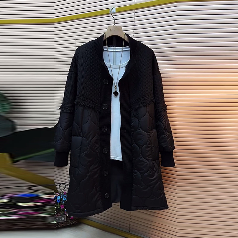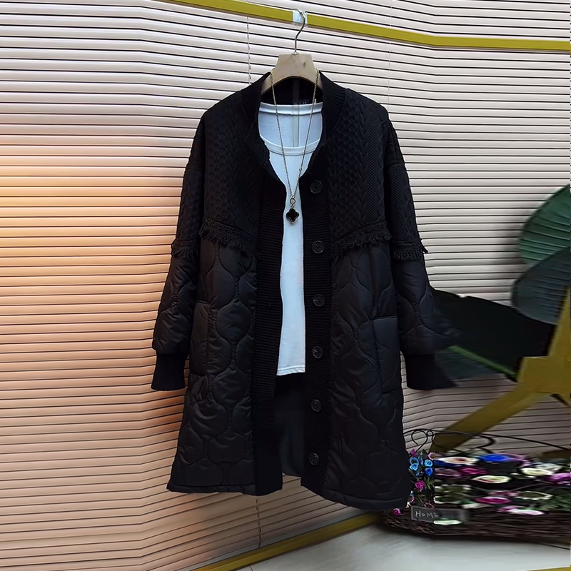 加肥大码女装立领拼接麻花纹棉服胖MM简约通勤休闲宽松中长款外套