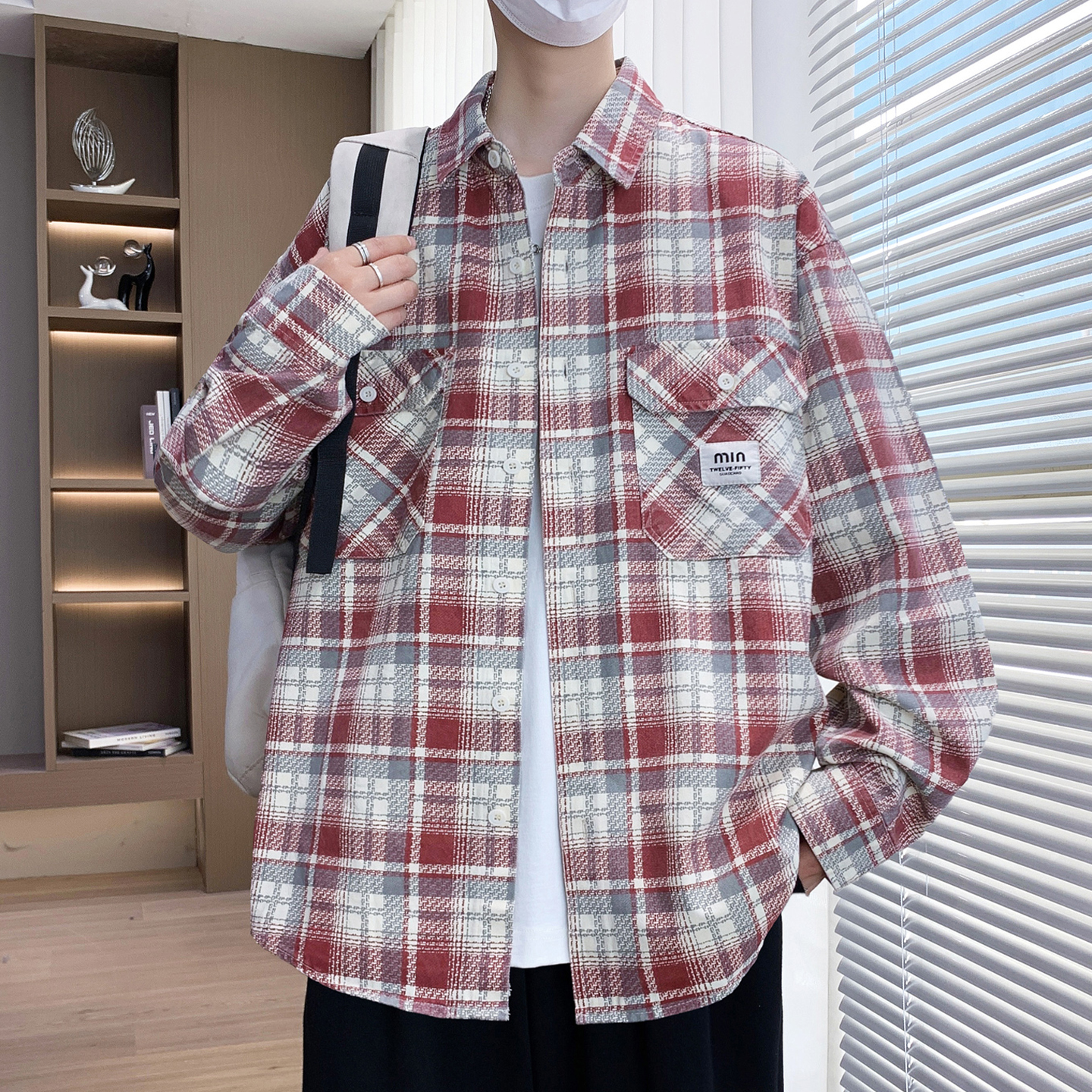 格子外套男生春秋季新款青少年休闲衬衫宽松潮流纯棉上衣夹克男装
