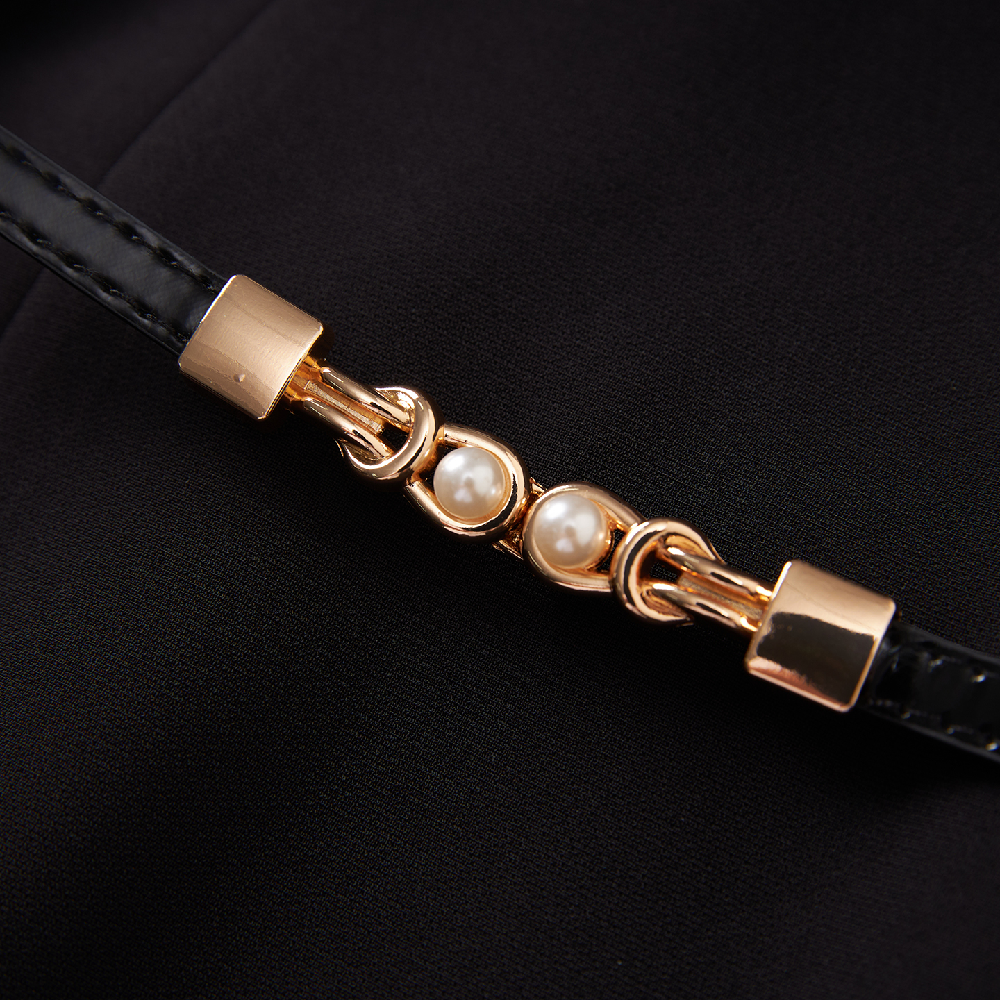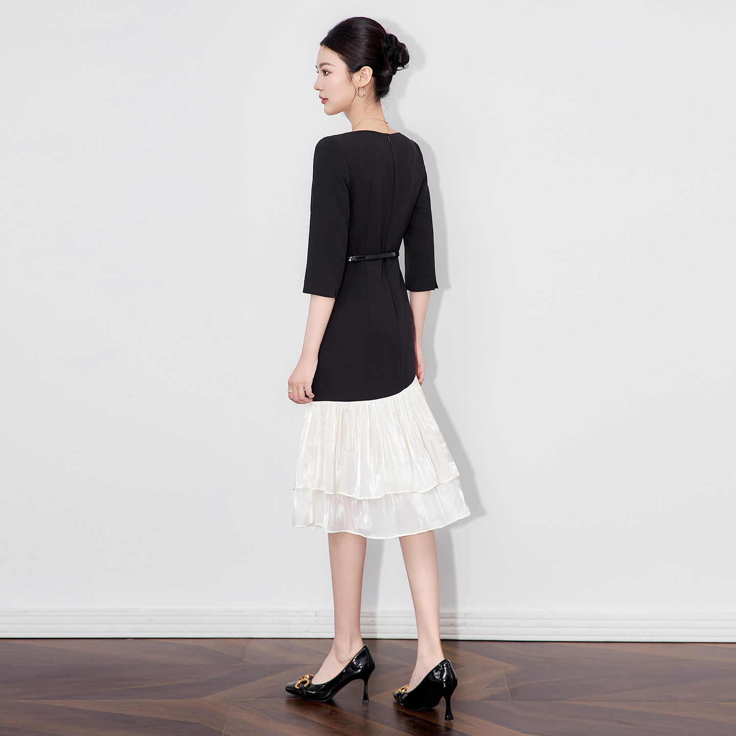 设计感不规则撞色荷叶边拼接收腰连衣裙礼服小黑裙罗家女装秋新款