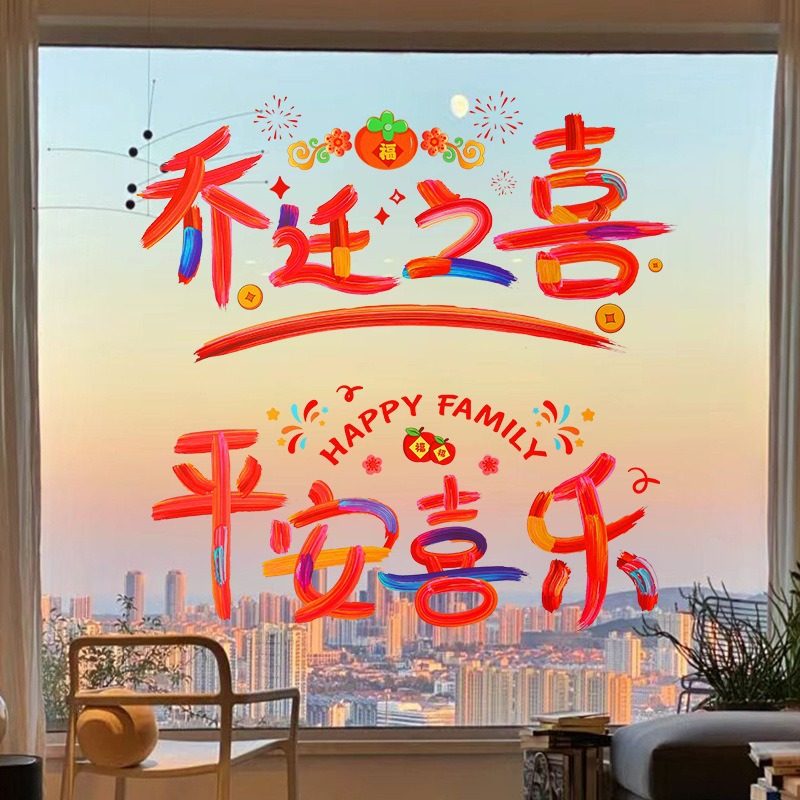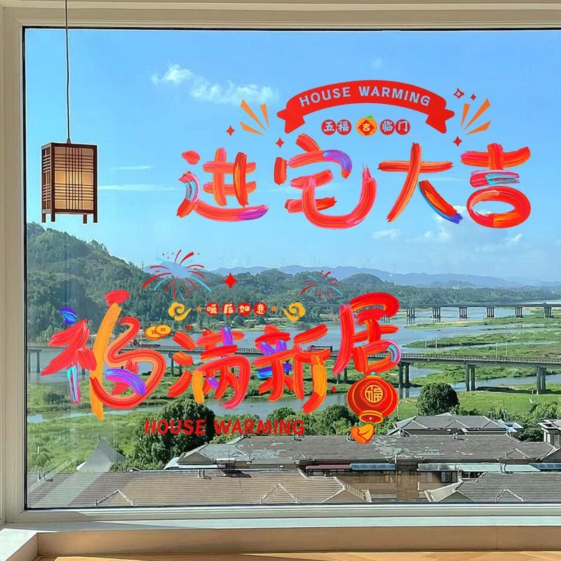 乔迁之喜装饰窗花玻璃静电贴搬家入宅门窗户贴纸新居布置仪式用品