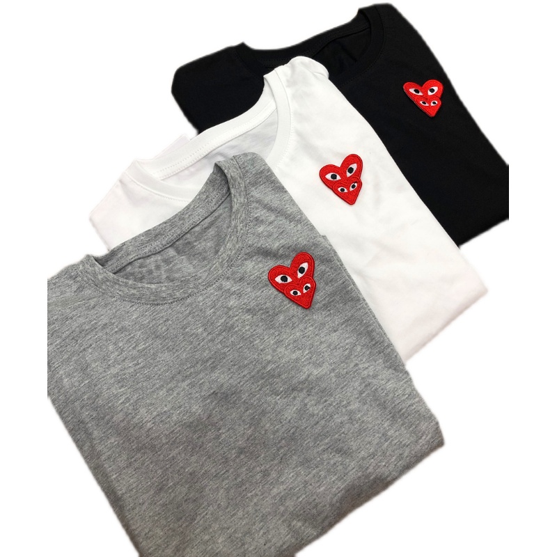 男童女童日系爱心白色短袖纯棉宽松红心刺绣一家三四口亲子装上衣