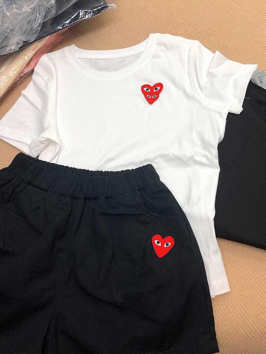 男童女童亲子装刺绣爱心短袖T恤