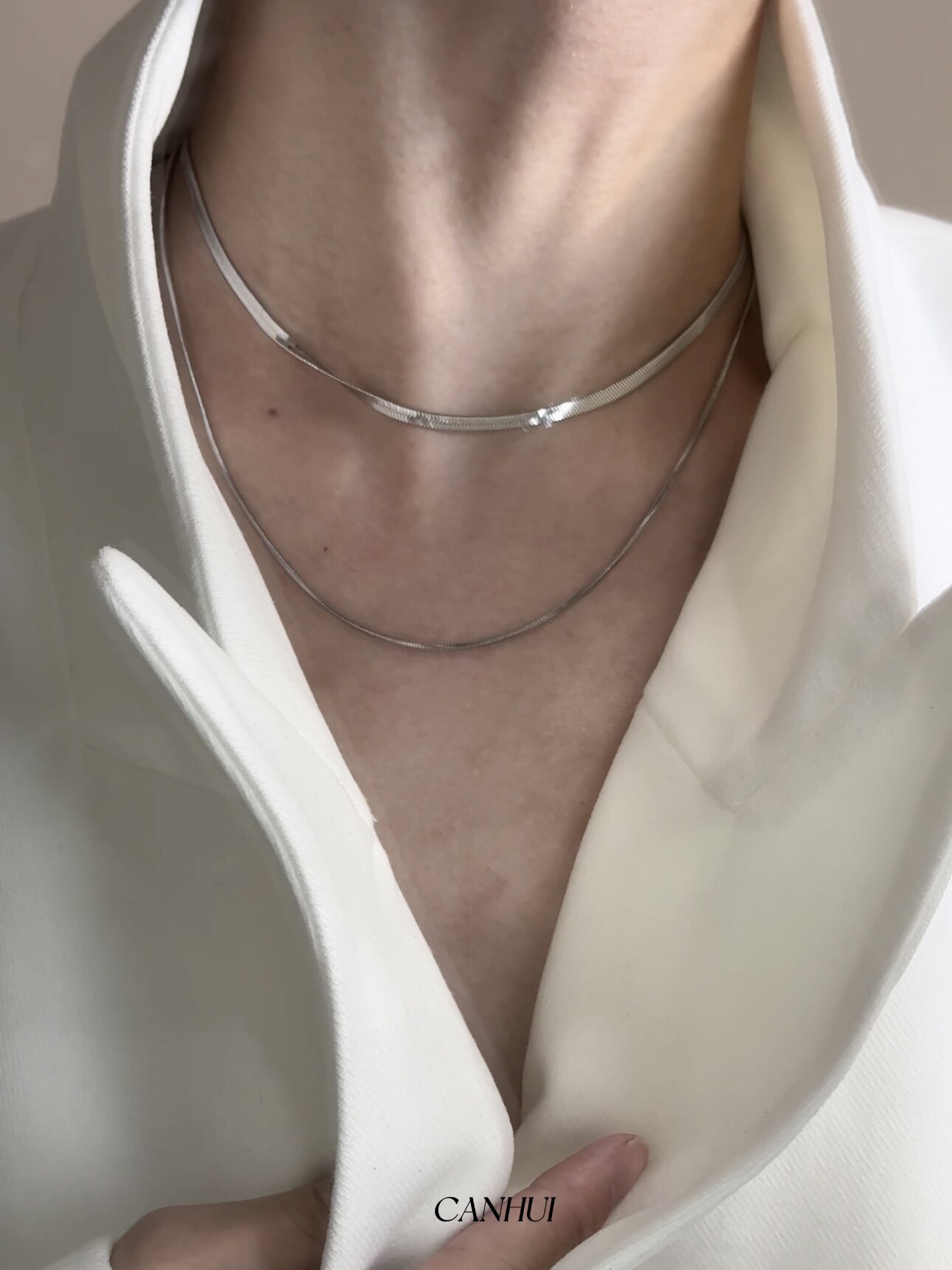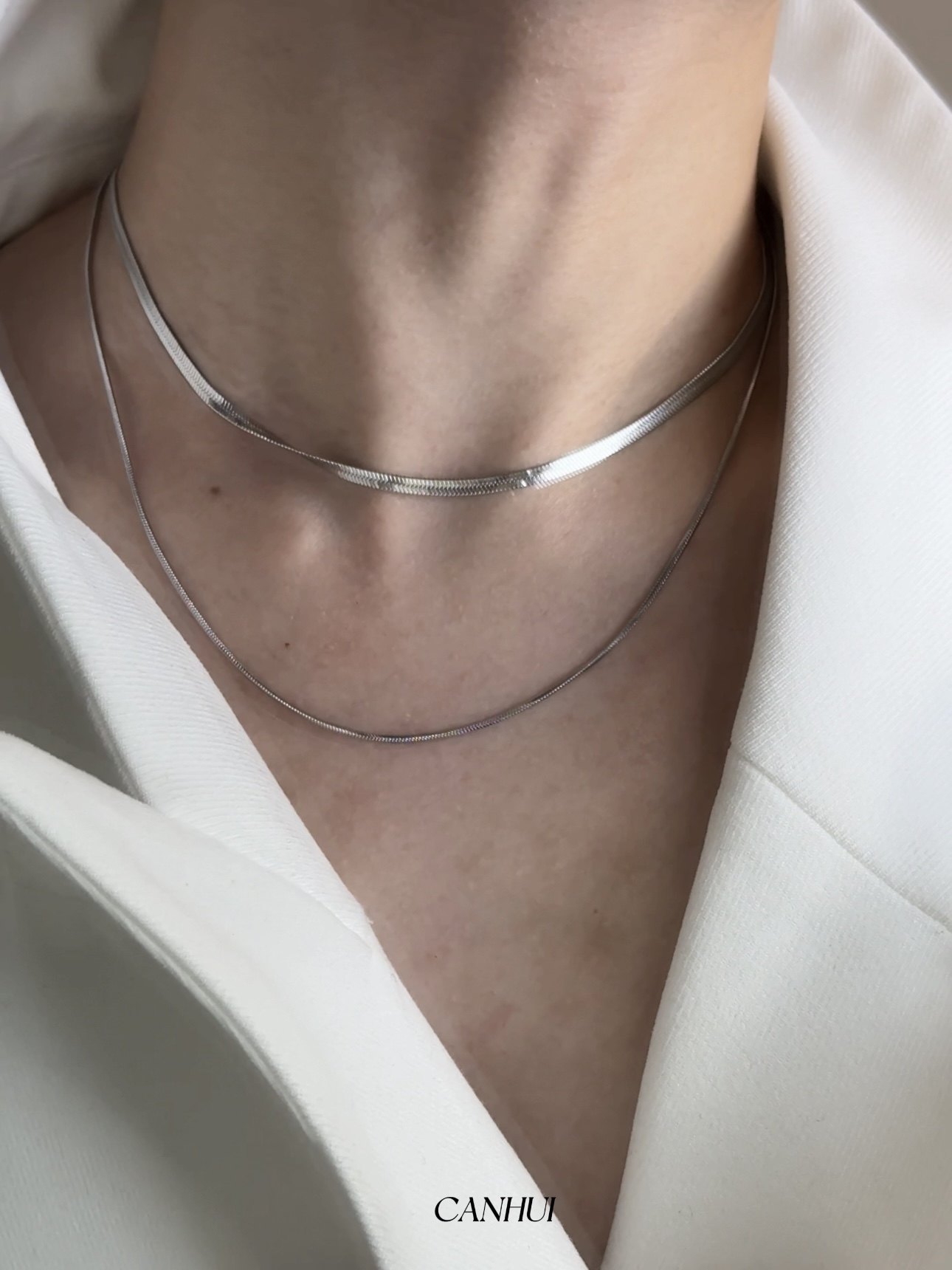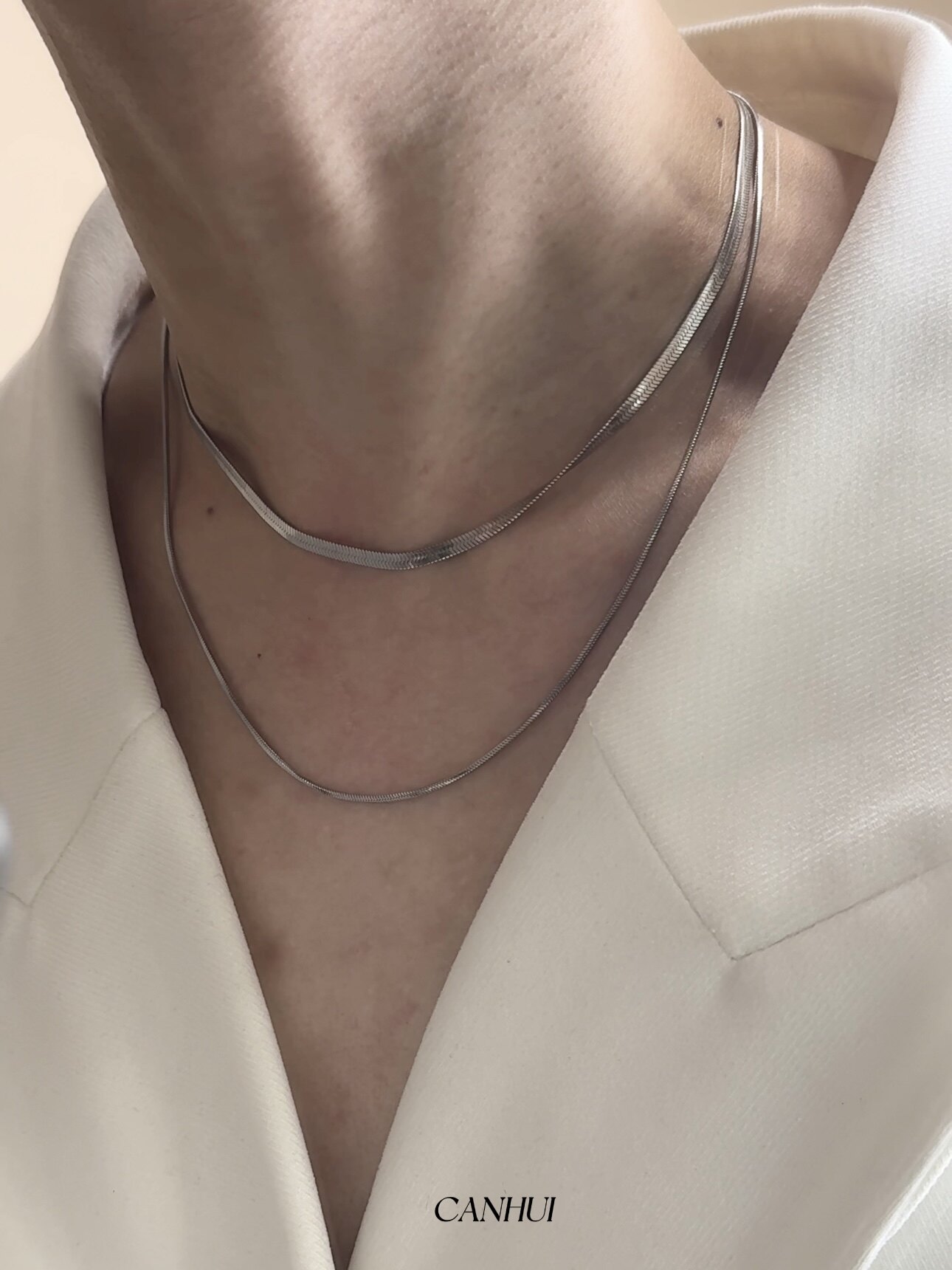 CS1OFR韩风钛钢双层叠戴项链男女ins蛇骨链颈链小众设计中性饰品