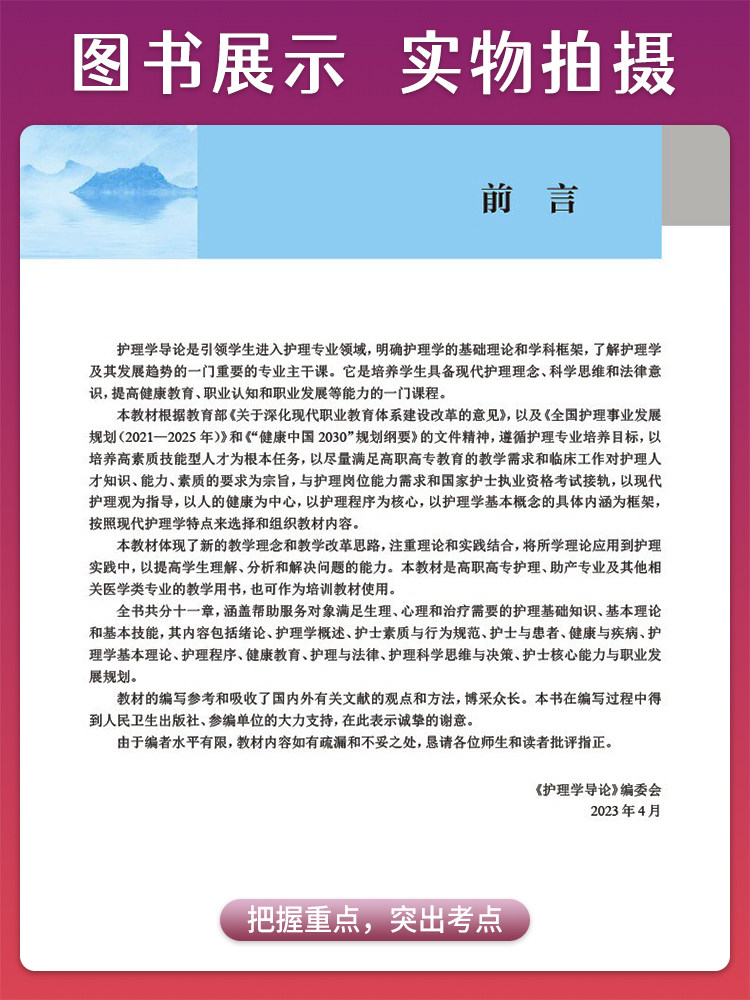 护理学导论 第4版 曾晓英 王连艳 十四五规划教材 全国中医药高职高专教育教材 供护理助产专业用 人民卫生出版社9787117349680