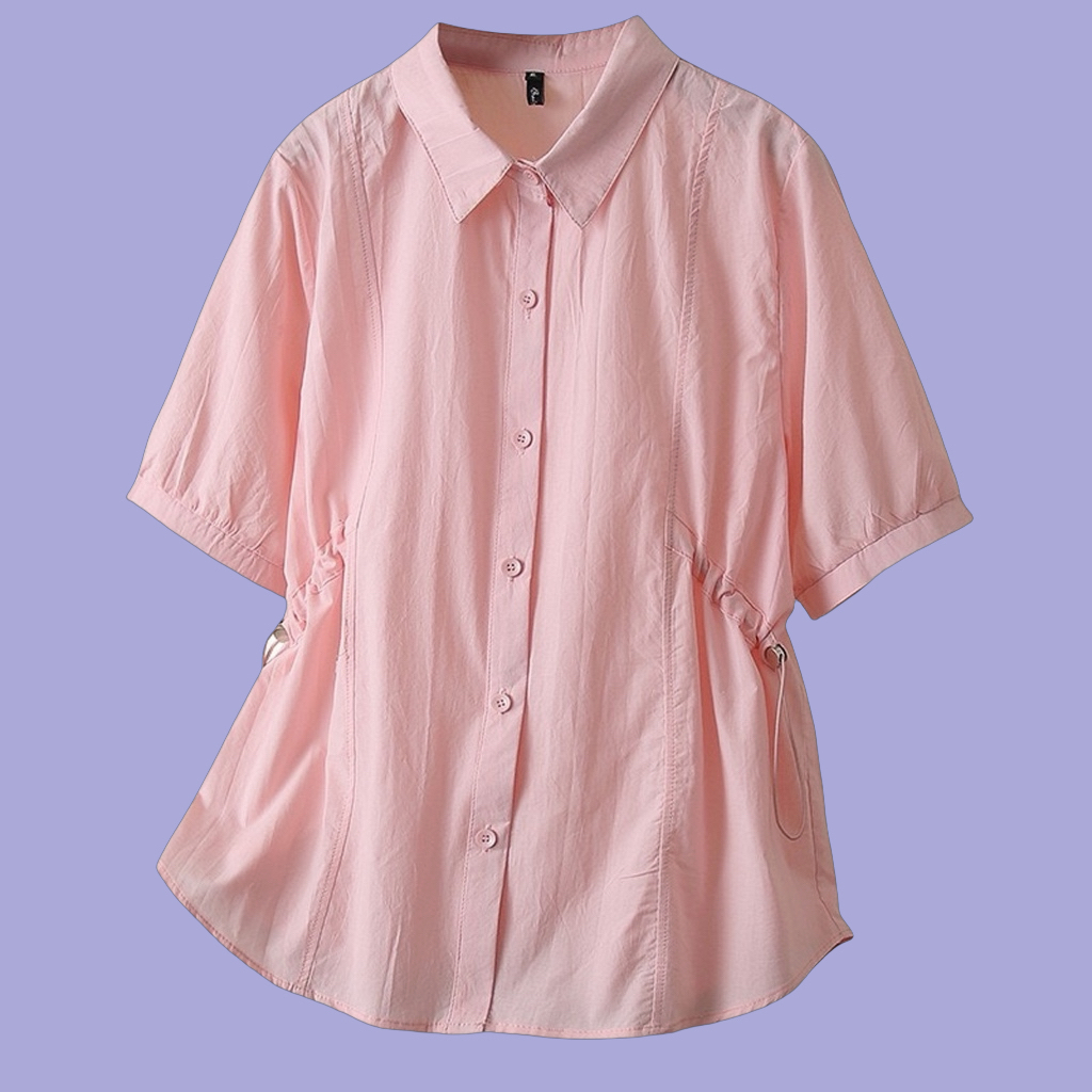 孕妇装夏季短袖衬衫大码200斤宽松显瘦上衣孕中晚期抽绳收腰衬衣1