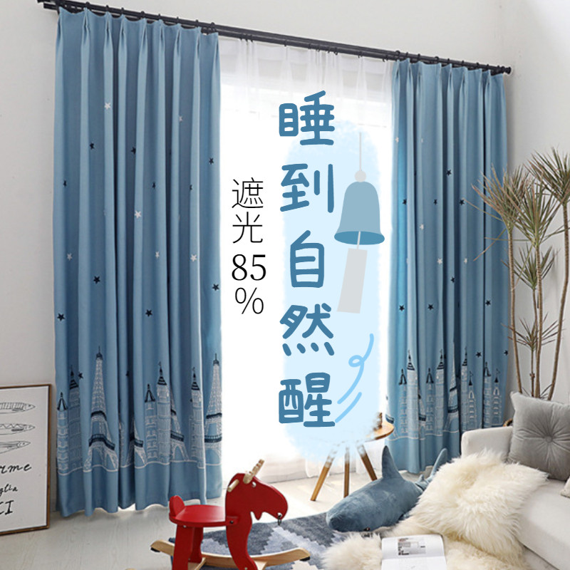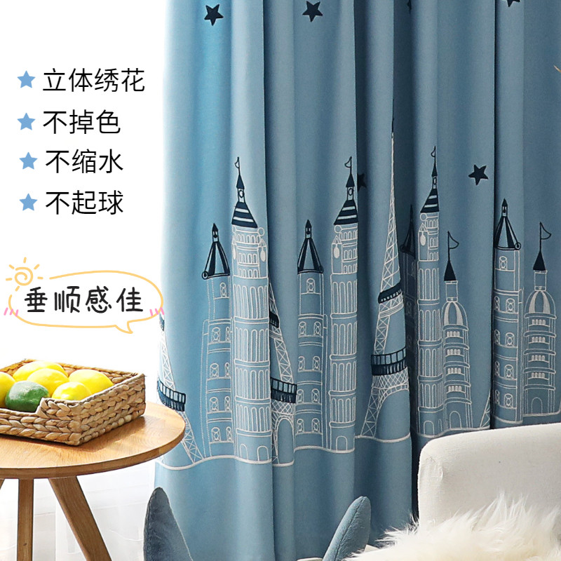 儿童房卡通窗帘免打孔男孩卧室2021年新款遮光布挂钩打孔小窗隔断