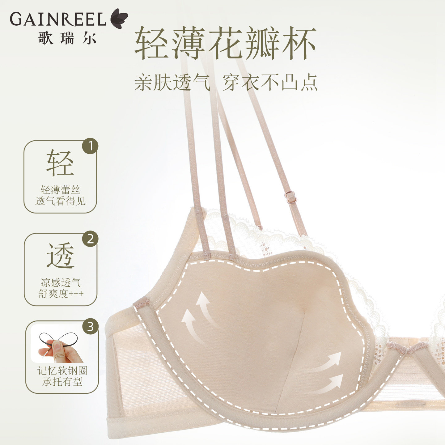 歌瑞尔薄款聚拢文胸罩小胸不空杯细肩带可调节日常法式美背内衣