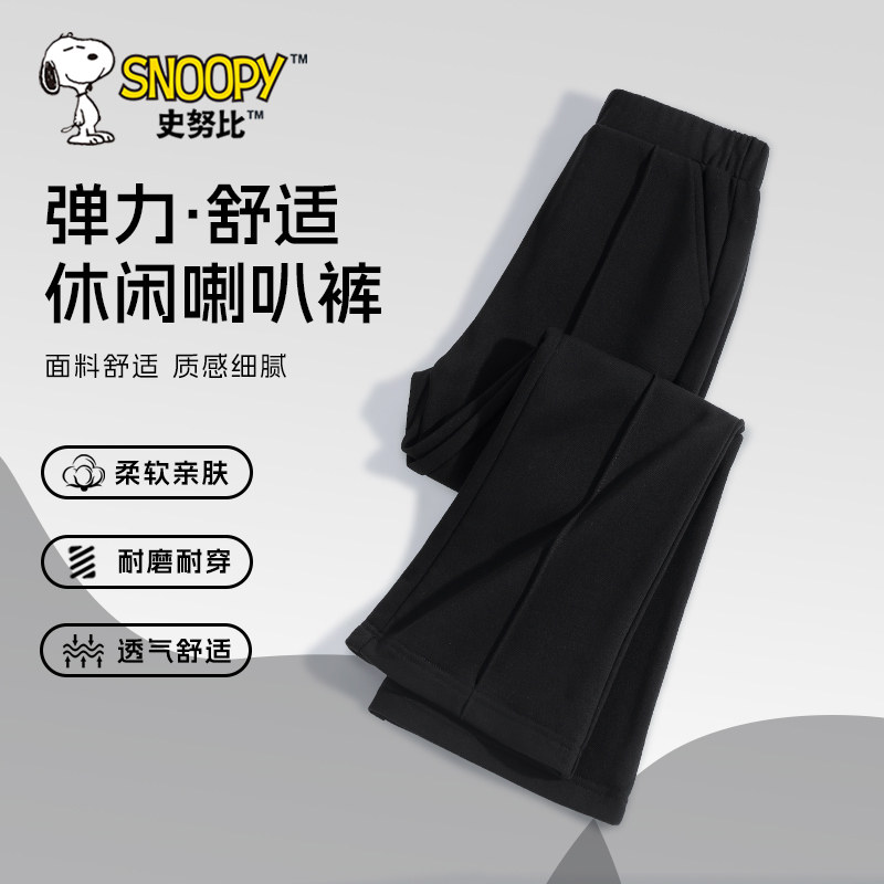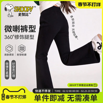 史努比儿童喇叭裤女童裤子春秋女孩黑色长裤时尚女大童微喇休闲裤